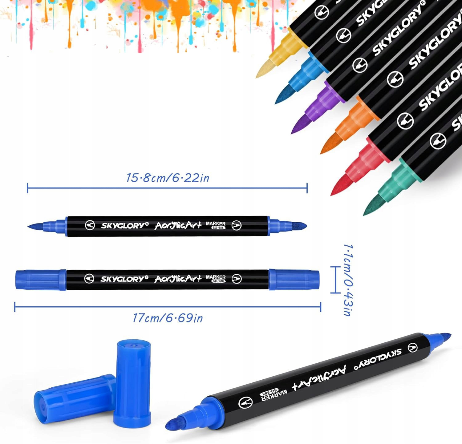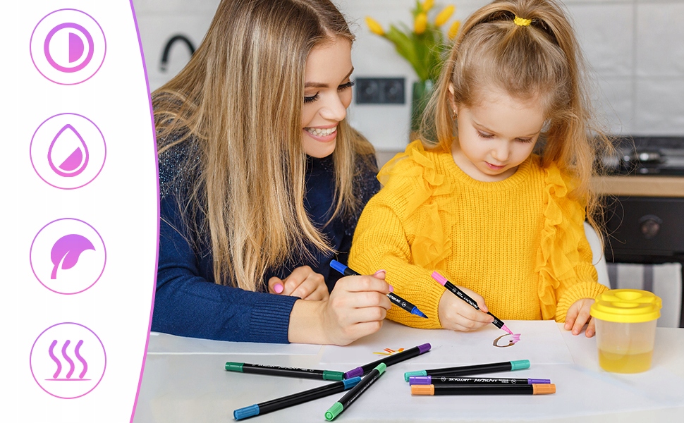 📄🖌️Двостороння багатофункціональна акрилова щітка: кожен маркер містить два зносостійкі волокнисті наконечники, які можуть малювати рівні лінії та мають багаторазове використання. Одна сторона має круглий наконечник діаметром 3 мм, який підходить для малювання та фарбування великого формату, а інша сторона має наконечник діаметром 1-2 мм. М'який наконечник підходить для малювання кутів і деталей. Подвійний наконечник дає більше творчих можливостей для малювання та створює витонченіші роботи.