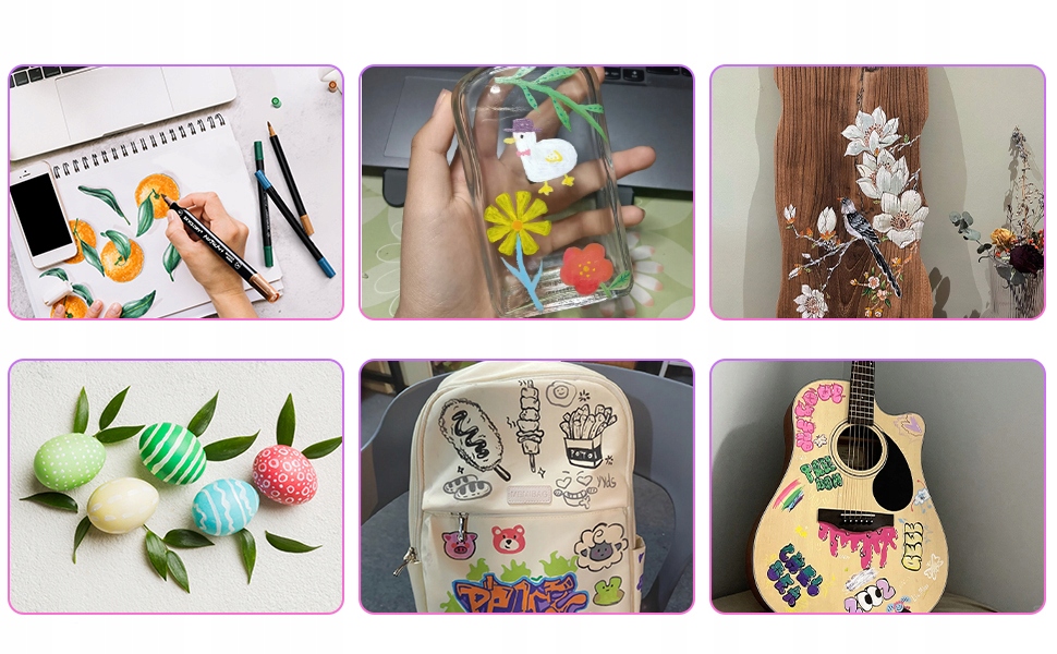 Застосування продукту: каміння, мушлі, скло, одяг, капелюхи, паперові коробки, листя, взуття та інші матеріали, які можна використовувати для малювання та DIY