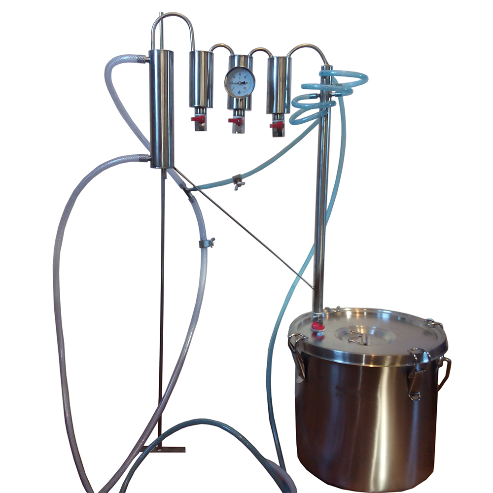 Використання холодних пальців завдяки потокам води дозволяє вільно регулювати міцність дистиляту - можна досягати до 90%.