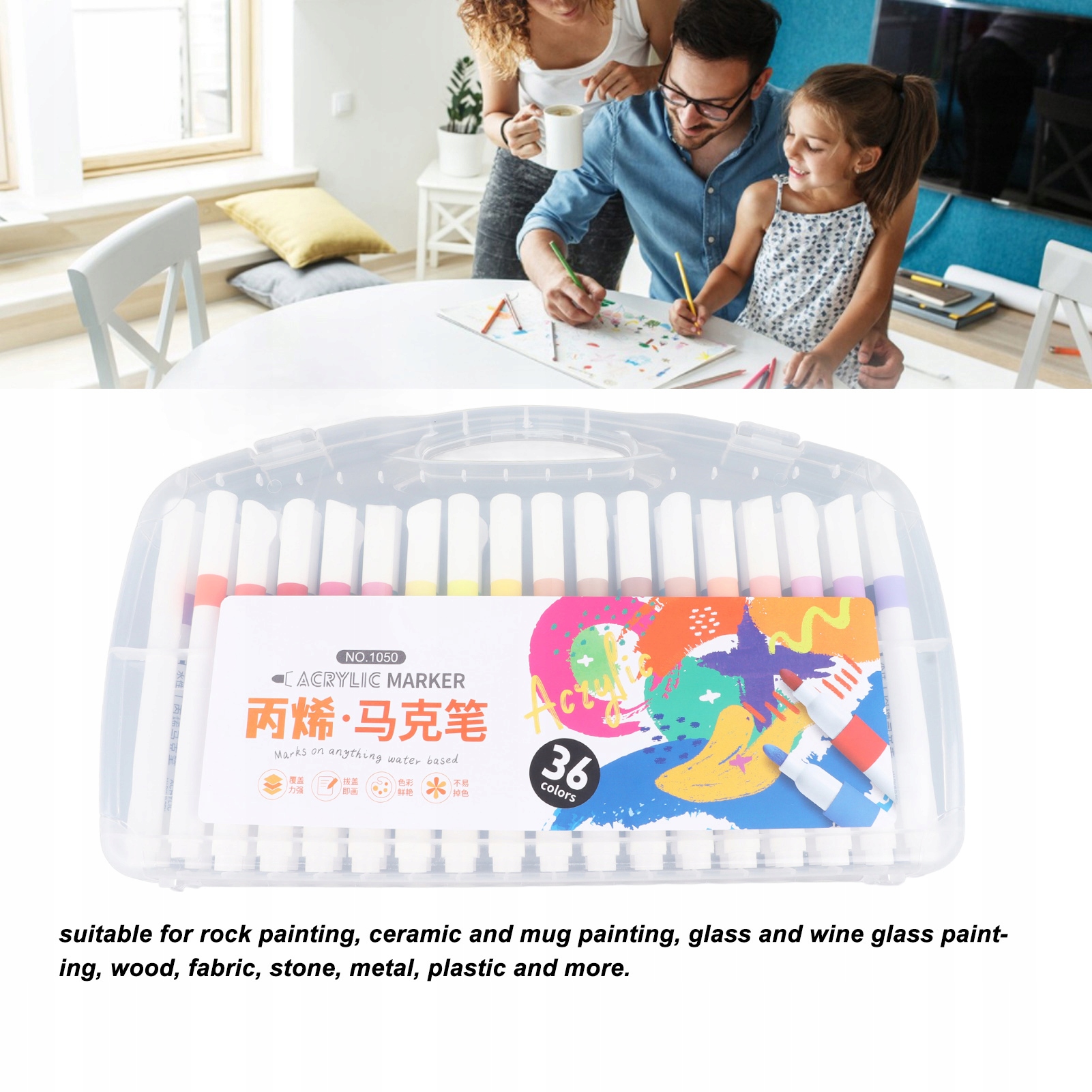1. 36 Кольори: Ви отримаєте 36 акрилових маркерів у різних кольорах. Багаті кольори означають більше змішування та веселощів. Завдяки цим ручкам у вас буде необмежена творчість.