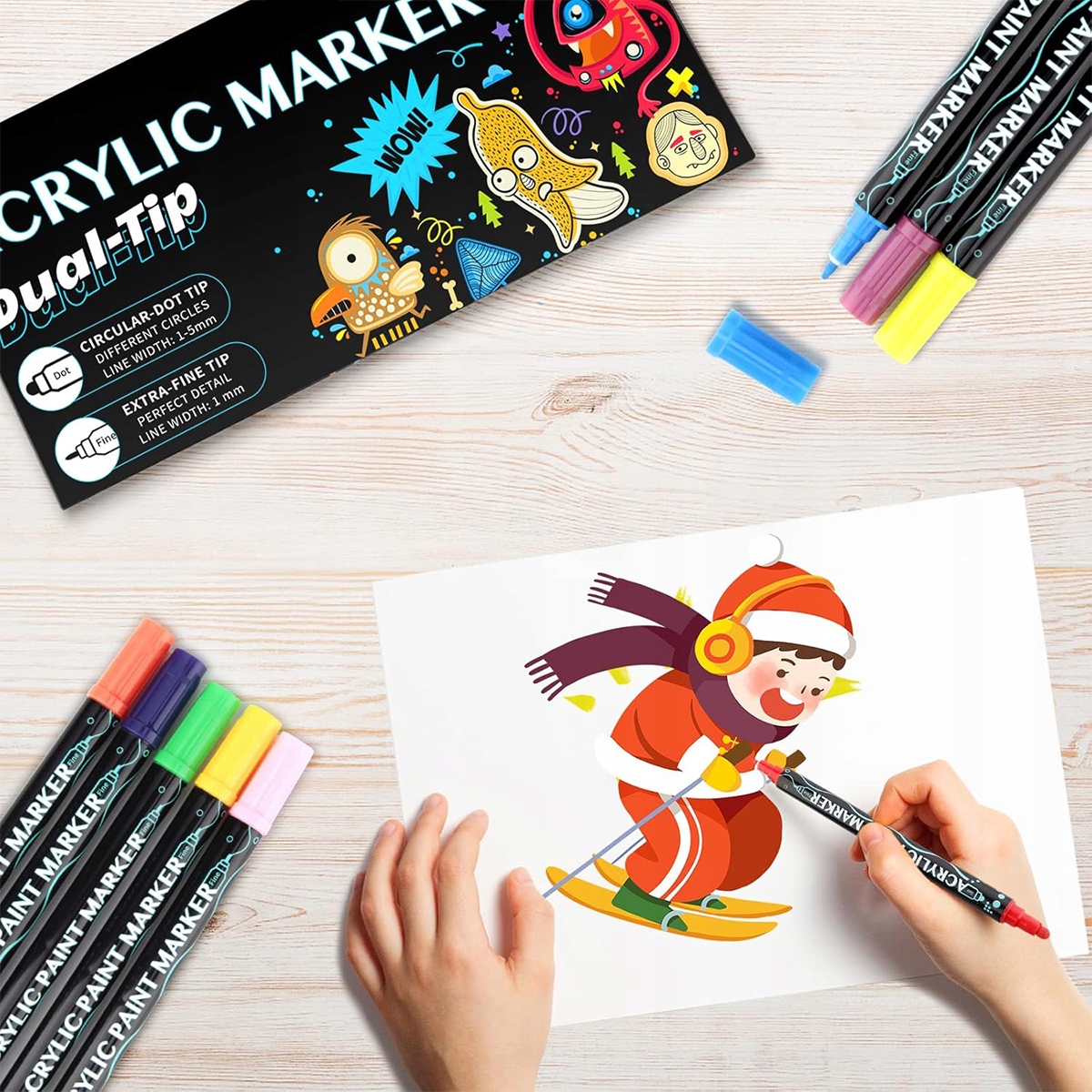 ❇wysoka якість та безпека: набір акрилових фарб виготовлений з високоякісної сертифікованої чорнила. На відміну від маркерів, заснованих на олії з сильним запахом, наші акрилові маркери, засновані на воді, нетоксичні та безпечні, особливо для дітей, але також ідеальні як інструмент для малювання для дорослих, професіоналів чи початківців.