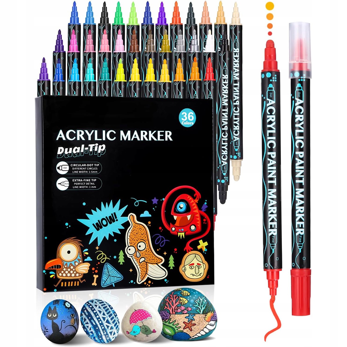 36 подвійних акрилових водонепроникних маркерів маркерів маркерів каміння