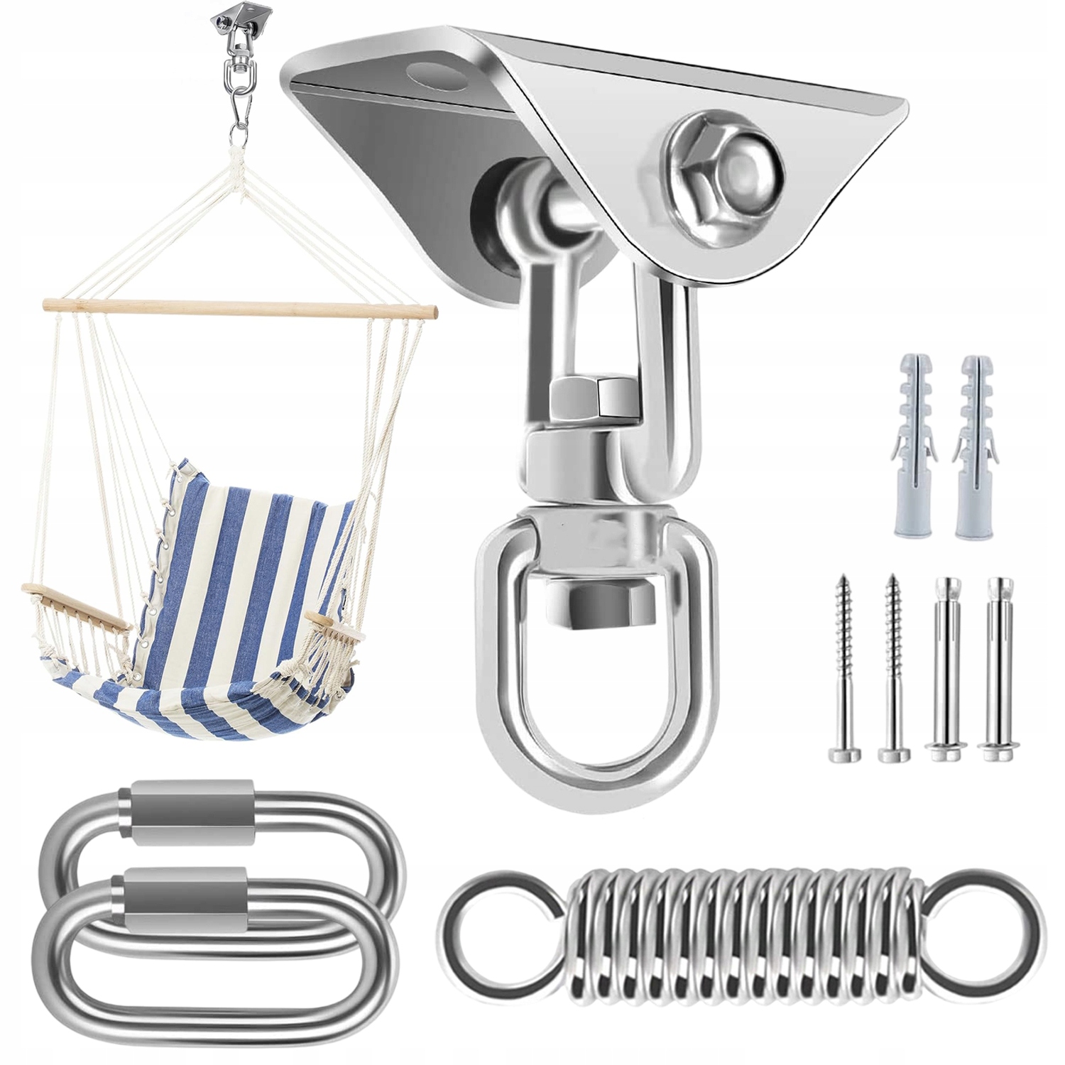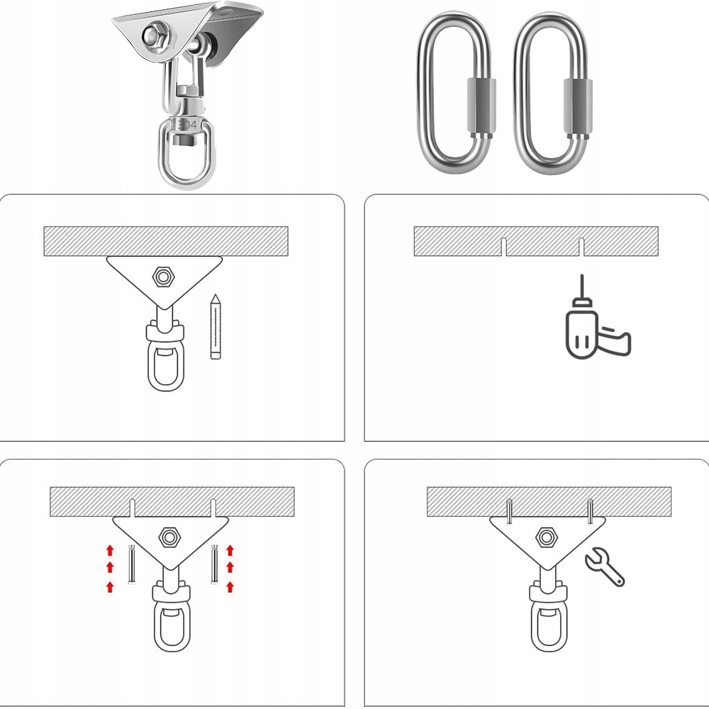 - Стельовий гачок витримує навантаження до 300 кг і може обертатися на 360 °. Використовуйте всередині і зовні, безпечний і стабільний. інше. Використання металевого гачка з металевим металевим металевим металевим металевим металевим гайком з металевою нержавіючої сталі з блокувальною гайкою, неодноразовим гайкою; Карабін з пружиною пір'я та текстурований скручений дріт
