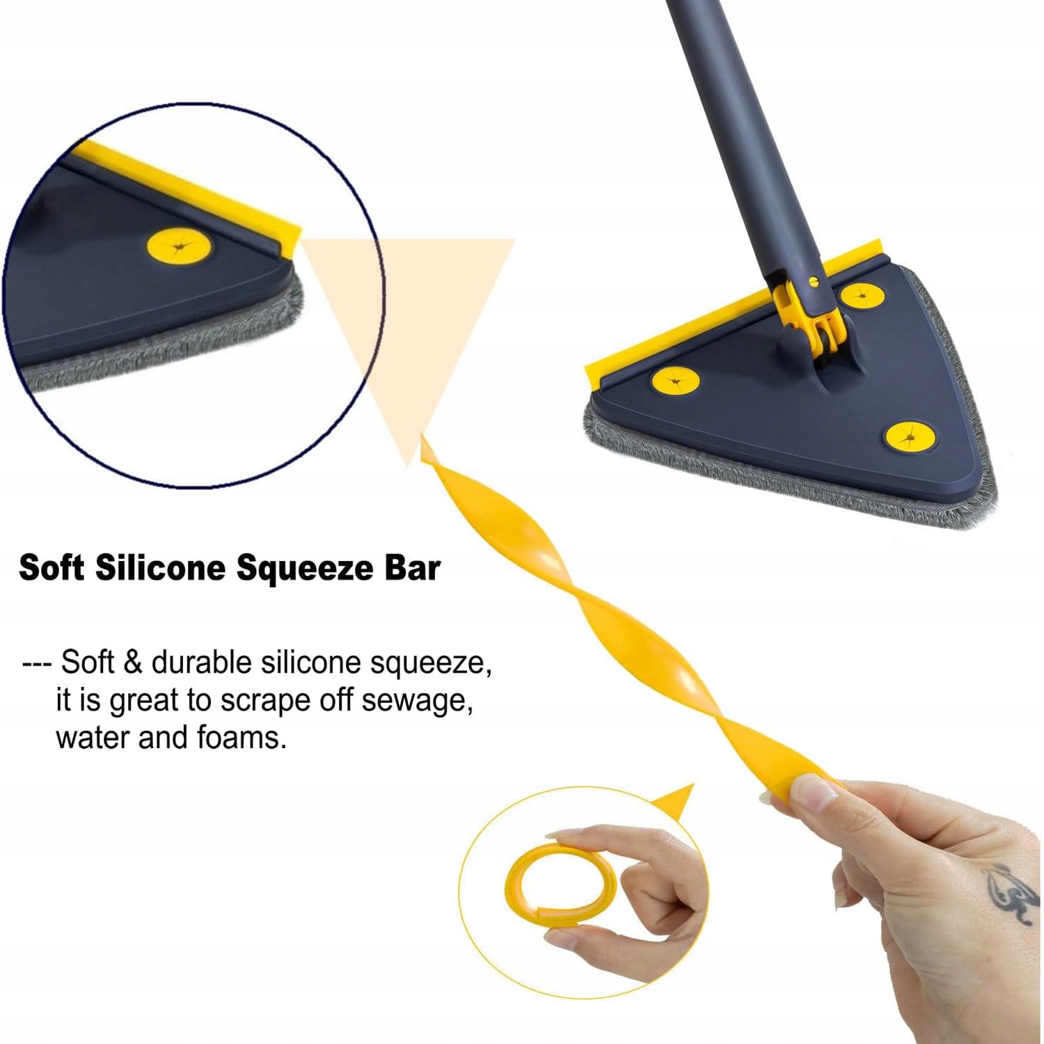 - 360 ° обертання - швабра до чистої стіни має трикутник Форма, а головка швабри може обертатися на 360 °, що полегшує очищення місць без мертвих кутів. Волосся.