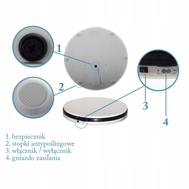 Професійний фотографічний стіл, що обертається на 360 градусів. Ідеально підходить для фотозйомки продуктів, а також для представлення товарів на виставці. Призначений як для професіоналів, так і для любителів фотографії. Характеризується міцною конструкцією. Високоякісна біла платформа виготовлена з жорсткого міцного матеріалу, ідеально підходить для фотографій товару.