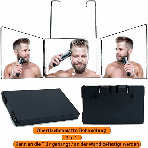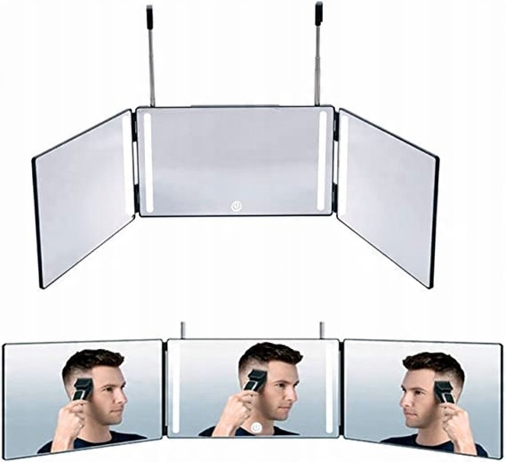 3-СТОРОННЕ ДЗЕРКАЛО НА 360° - Високоякісні зачіски завжди коштують дорого, але з нашими перукарськими дзеркалами ви можете заощадити гроші та час. Дзеркало, що складається з трьох сторін, дозволяє бачити всі кути вашої голови та обличчя, щоб створити власну зачіску. РЕГУЛЬОВАНА РУЧКА - перукарське дзеркало має алюмінієвий телескопічний кронштейн і дверний гачок, тому перукарське дзеркало можна легко повісити на двері, не потрібно пробивати отвори і легко впасти. Відрегулюйте висоту відповідно до ваших потреб для більш зручного кута огляду. Легко носити: дзеркало для макіяжу має портативну складану конструкцію, його можна брати куди завгодно, легко покласти в рюкзак або валізу, це високоякісне дзеркало для домашніх подорожей, унісекс. Розмір у складеному вигляді становить лише 32 х 19 см, що не займає багато місця для зберігання. Матеріал преміум-класу: Дзеркало виготовлено з високоякісного скла HD, яке забезпечує чітке та реалістичне відображення та створює ідеальні умови для стрижки. Корпус виготовлений з матеріалу ABS, який певною мірою витримує падіння та тиск. Характеристики продукту: потрійне складане дзеркало, вага нетто: 1500 г, розмір у складеному вигляді: 30,5*19,5*3 см, розмір у розкладеному вигляді: 92,8*19,8 см, розмір одного дзеркала: 30,4*19,8 см, довжина в розтягнутому стані: 0-52,5 см,