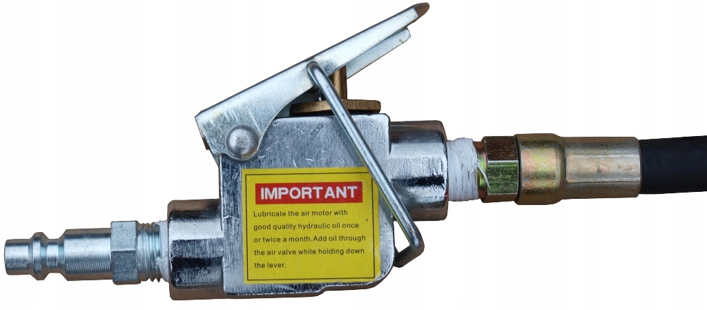 Підняття підйому відбувається як з насосом для ніг, так і за допомогою компресора, підключеного до підйому тиску до приблизно 8 бар (компресор не включений у набір). Якщо ми не підключимо компресор, підйом буде працювати шляхом накачування. Ведуча відбувається плавно після натискання на важіль другого стопу (відпустіть клапан).