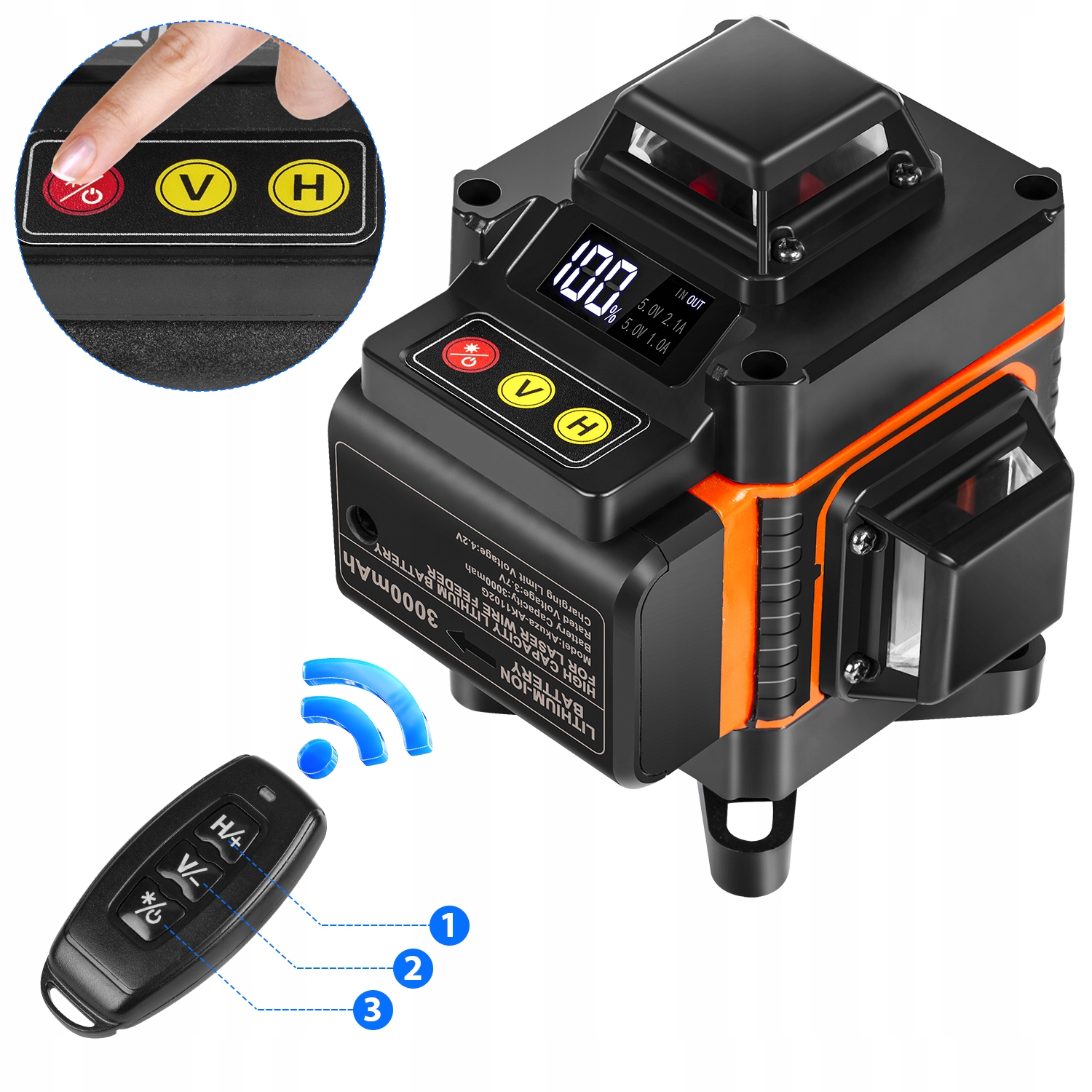 Лазерний рівень ETiME 360° 4D лазерний рівень 16 ліній Зелений світловий промінь Горизонтальний вертикальний лазерний рівень
