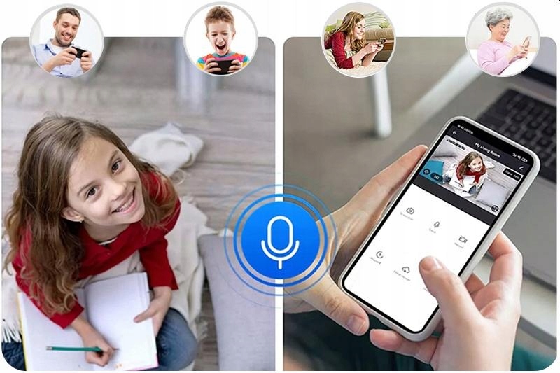 Динамік, вбудований у камеру дає змогу розмовляти через програму. Коли ви знаходитесь поза домом або просто в іншій кімнаті, ви можете використовувати програму на своєму телефоні, щоб поговорити з іншою людиною. Ваші діти будуть спокійні, коли почують ваш голос з камери, і тварини зможуть слухати вас, якщо ви побачите, що вони створюють проблеми під час вашої відсутності.