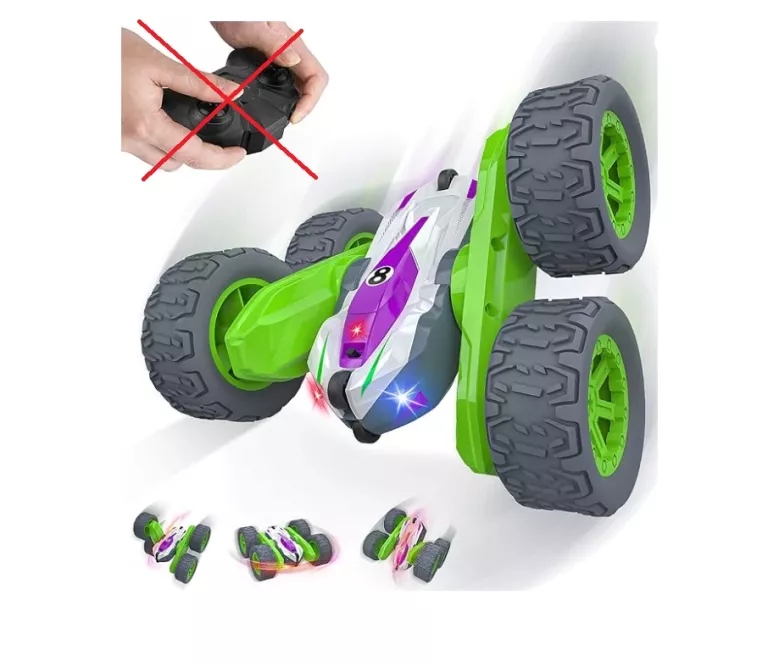 Іграшка з контрольованою автомобілем має подвійні обертові сторони, 4 свинцеві колеса, що дозволяє виконувати дивовижну акробатику. У 180, вперед і назад, він може зробити це ідеально. Крім того, швидкість