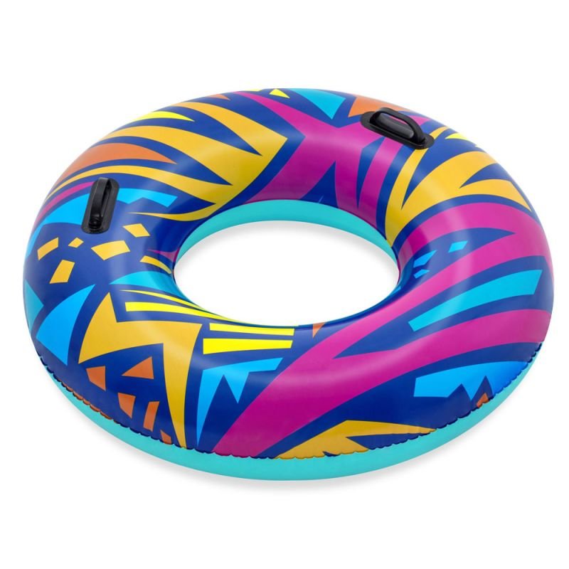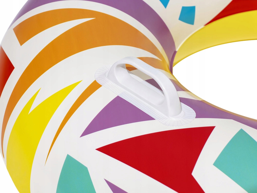 Вільний час біля води був би невдалим без кільця! Завдяки цьому маленькі і великі користувачі можуть збожеволіти і почуватися в безпеці. Бренд Bestway вибрав сміливий геометричний візерунок, тому на пляжі ви точно не залишитеся непоміченою. Колесо виготовлено з матеріалу ПВХ, який стійкий до незначних пошкоджень і зміни кольору.