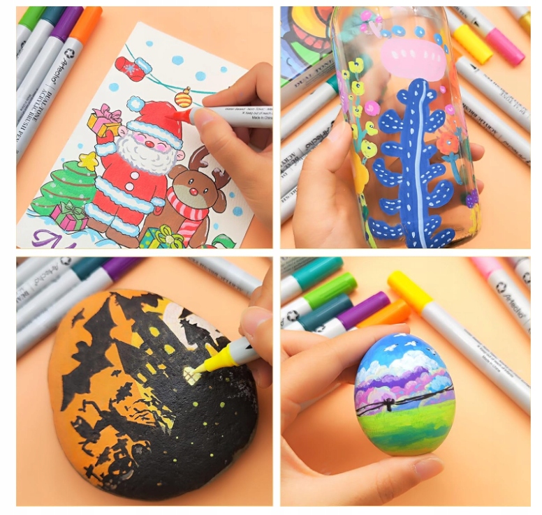 Водостійкі, 72 кольори, акрилові стійкі маркери. Двосторонні маркери для малювання, акрилові маркери для дерева, альбомів, кераміки, каменю, паперу, картону, багатьох інших поверхонь і предметів.