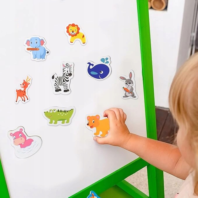 Набір із 36 милих дерев’яних магнітів у формі тварин — ідеальна пропозиція для наймолодших! Вони підійдуть як розвиваюча іграшка, барвиста прикраса холодильника, магнітної дошки або іншої металевої поверхні. Вони допомагають розвивати уяву, дрібну моторику та вчать розпізнавати тварин.
