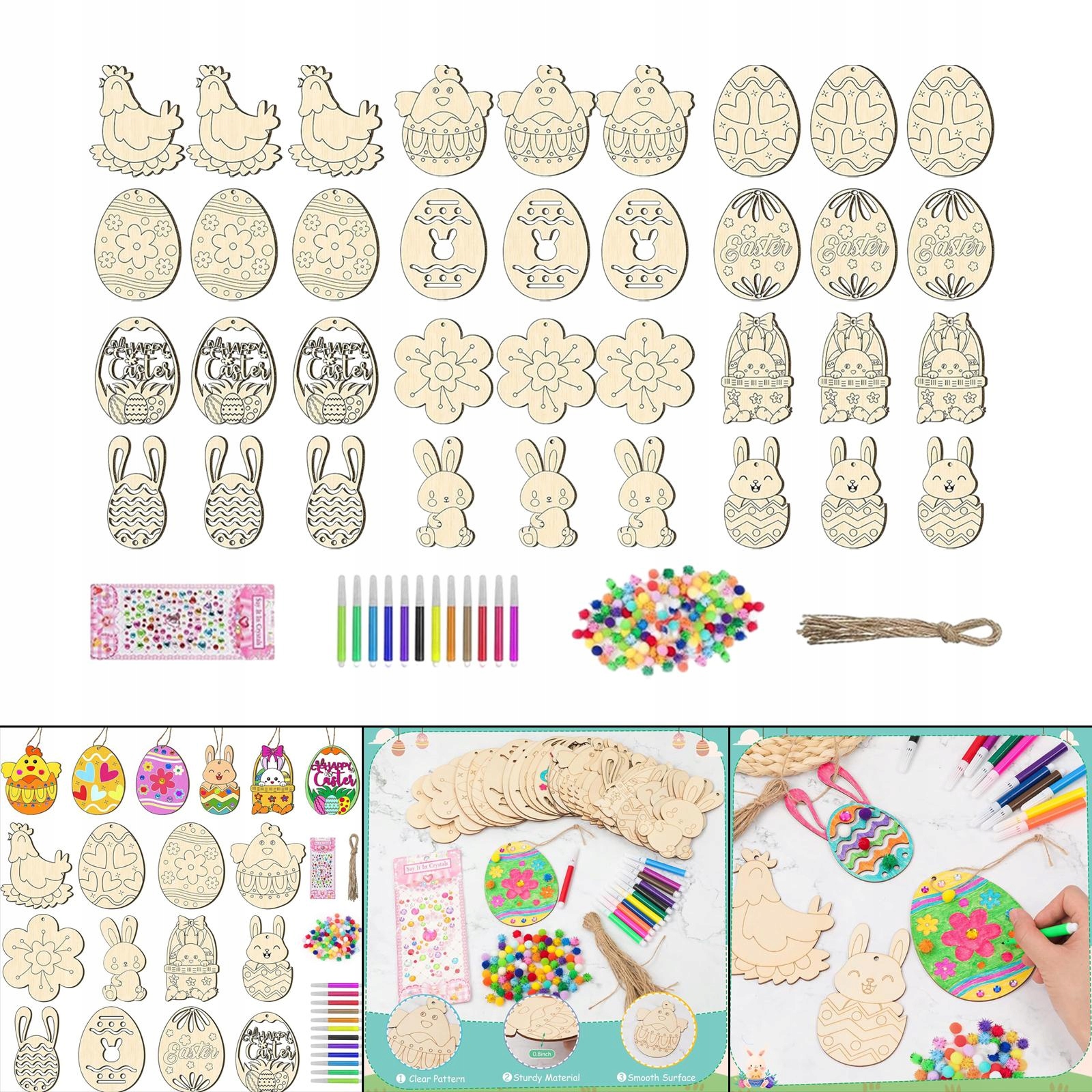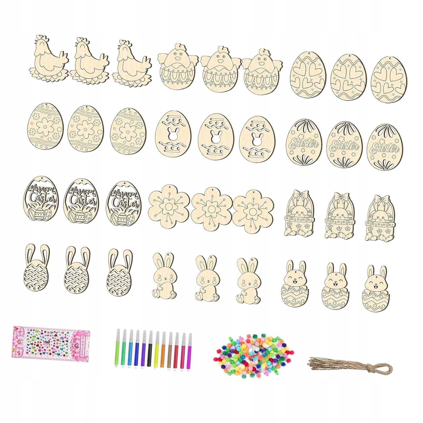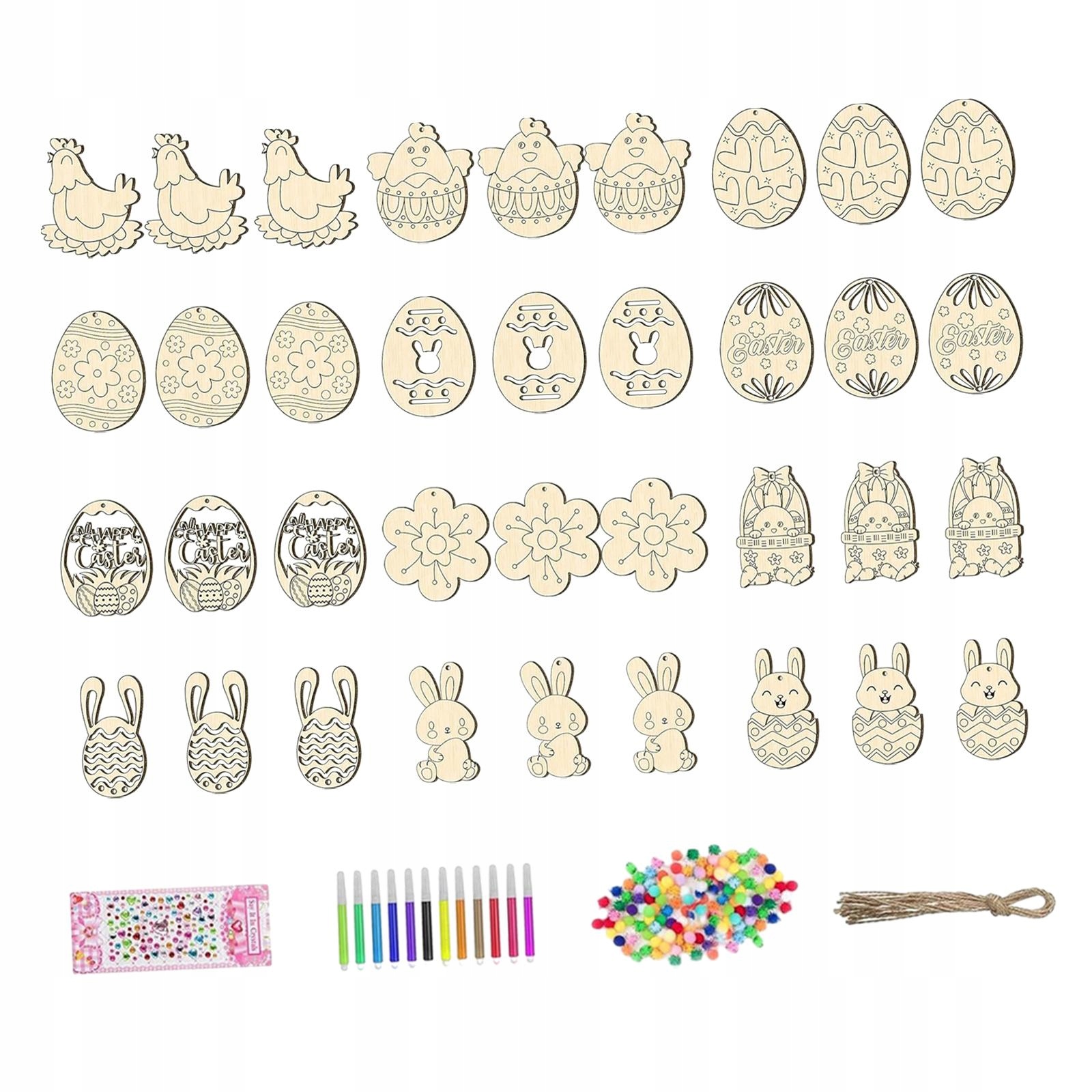 [Вміст упаковки]: набір включає 36 незавершених дерев'яних великодніх прикрас. Усі дерев’яні прикраси мають отвір вгорі, що дозволяє їх підвішувати на струну.