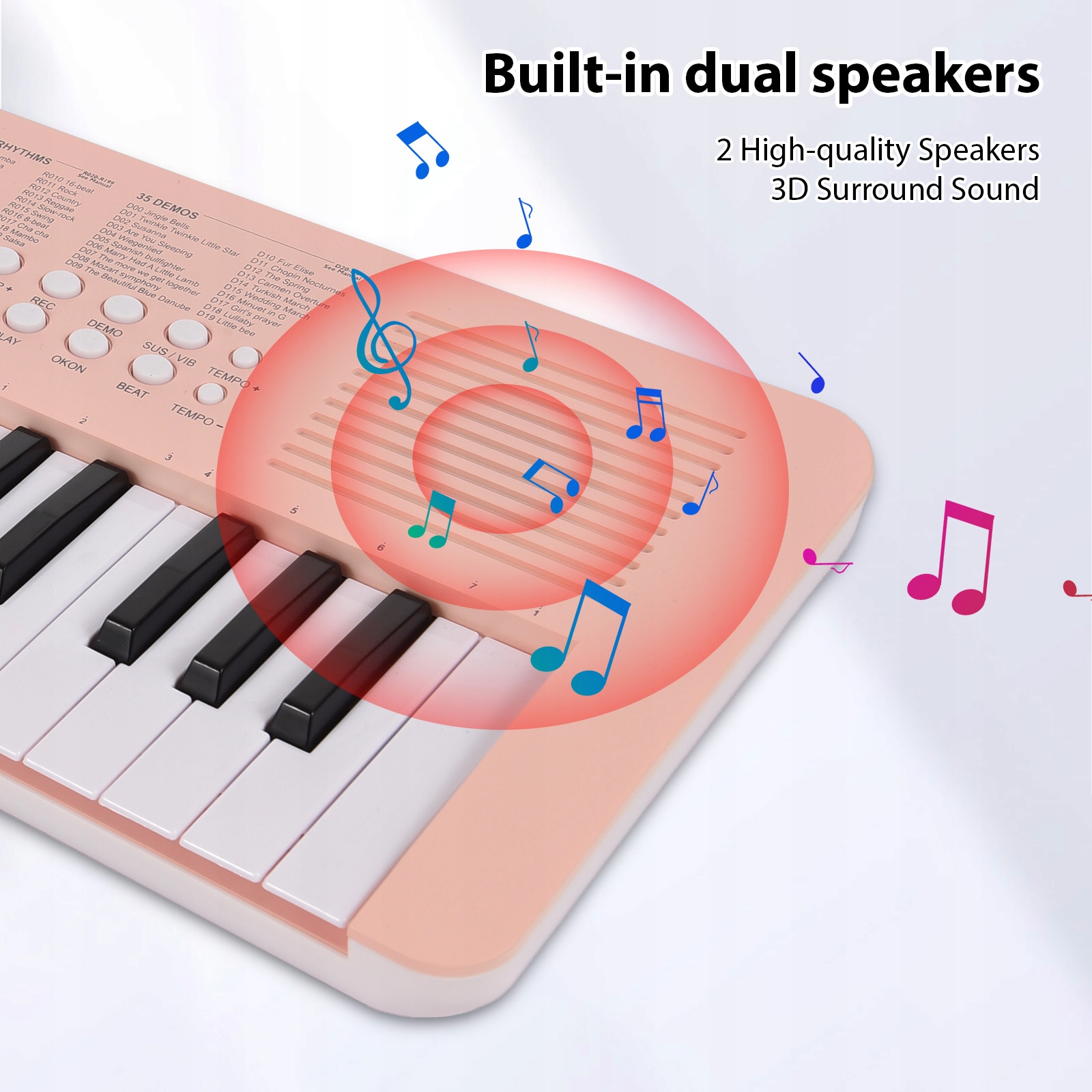 1. 【Компактна та портативна】: Ця 37-лакна електронна клавіатура є компактною та легкою, що робить її ідеальною для музикантів на шляху. Його міні -розмір дозволяє легко зберігати та транспортувати, що робить його ідеальним музичним подарунком як для початківців, так і для досвідчених гравців.