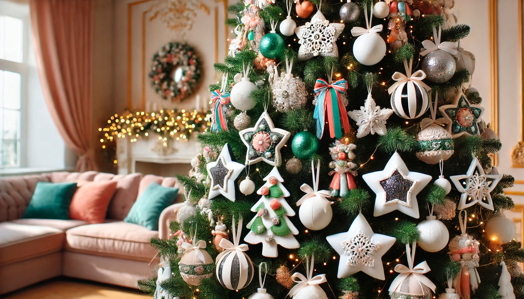 ❣ Зразок ілюстративного зображення ялинки, прикрашеної різними прикрасами полістиролу.