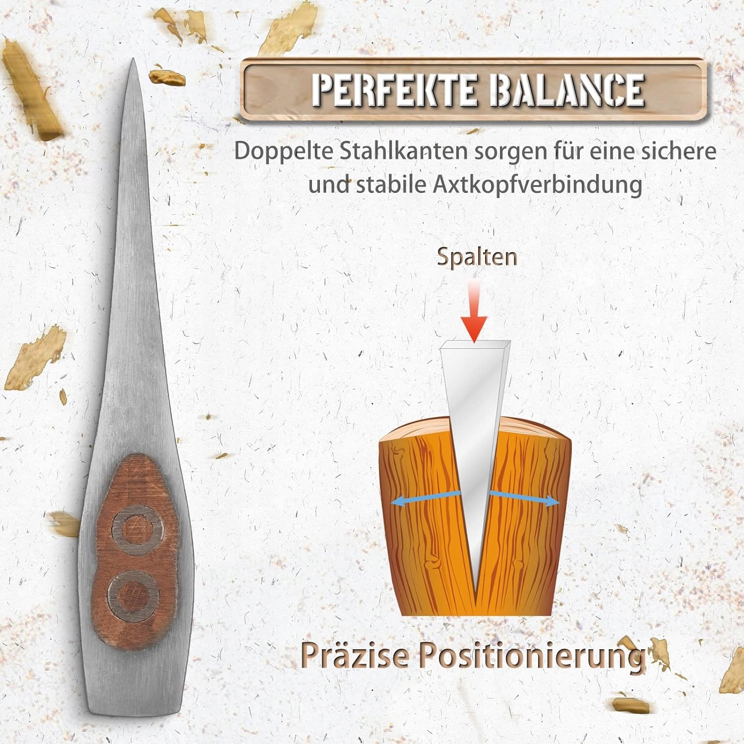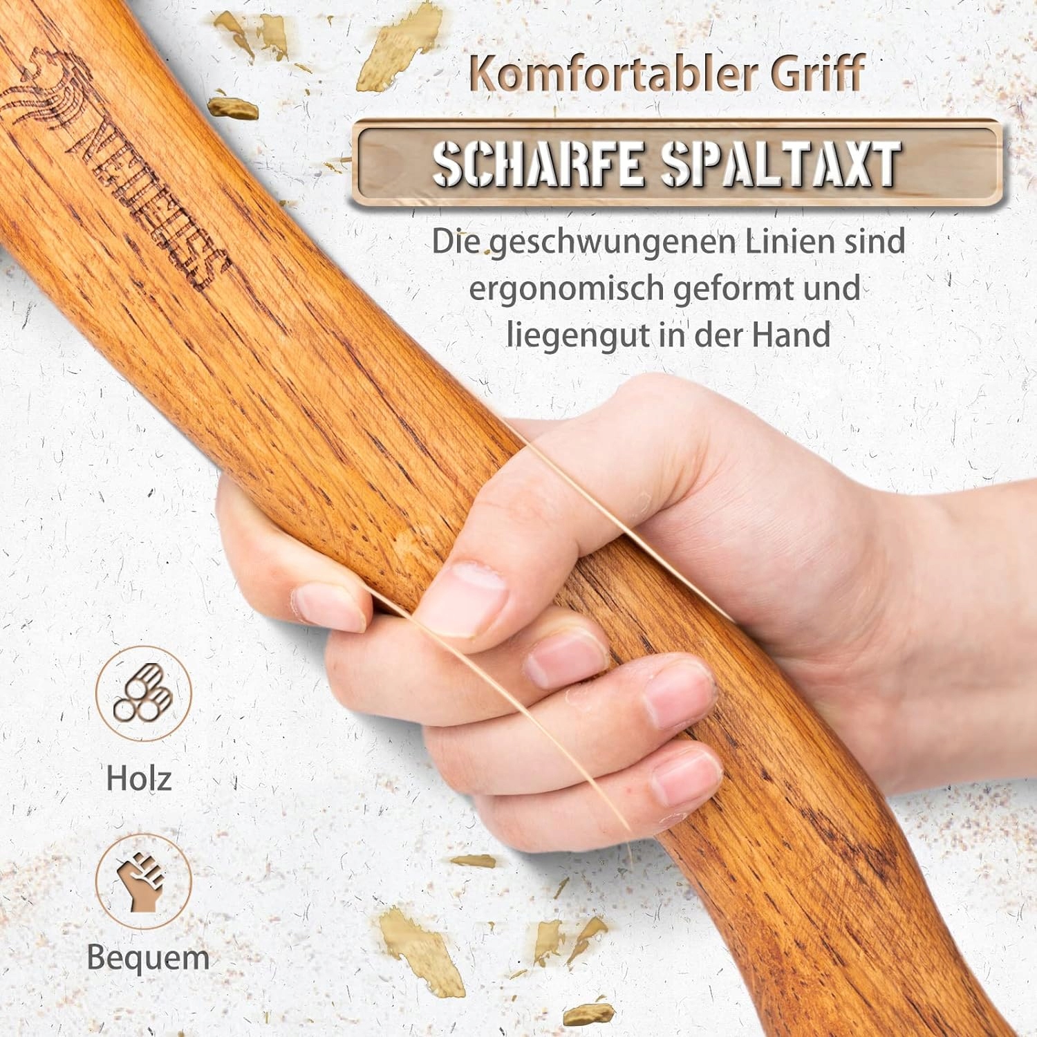 - Ручка високої якості: зчеплення цієї сокири виготовлена з міцної та міцної букової деревини. Сильна і ніжна текстура ручки. Зручна і гладка ручка. Відмінний баланс. Ручка ручки була спеціально оброблена для збільшення тертя та забезпечення певного зчеплення під час використання. Вигнуті лінії мають ергономічну форму і добре лежать у руці.