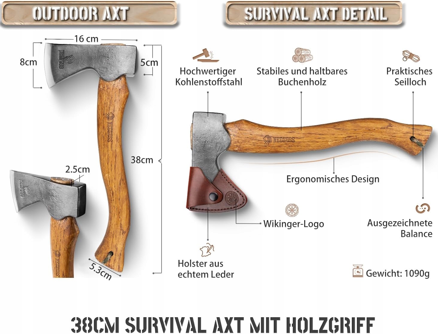 виживання сокира 38 см, вікінг сокира, сокира з дерев’яною ручкою, зовнішня сокира з піхвою, сокира кущів, розщеплення сокири, капелюх, різка сокира, універсальна сокира, високоякісна сокира для саду та зовні 1>