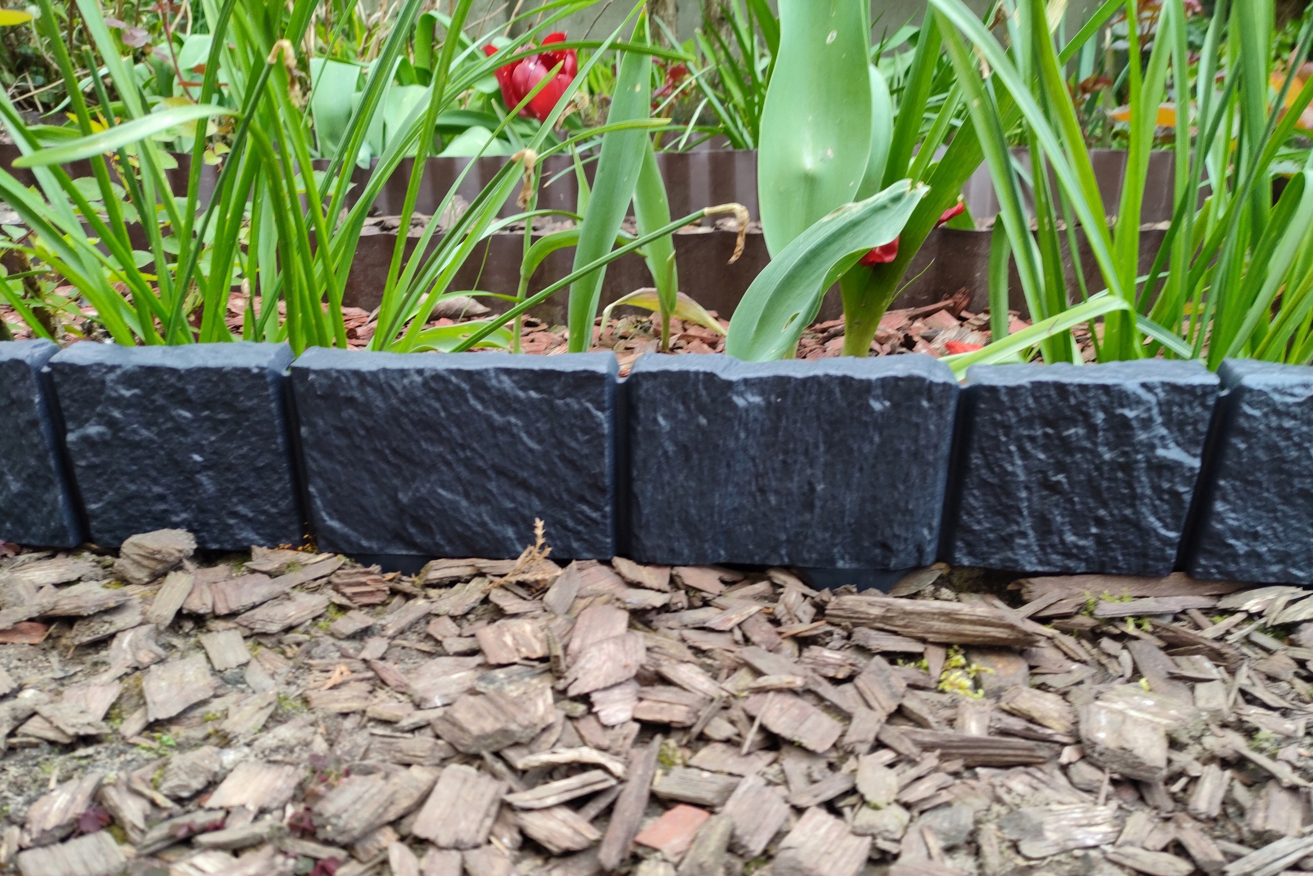 390 см САДОВИЙ ПАЛІСАД Окантовка для садового газону з розділеного каменю Антрацит