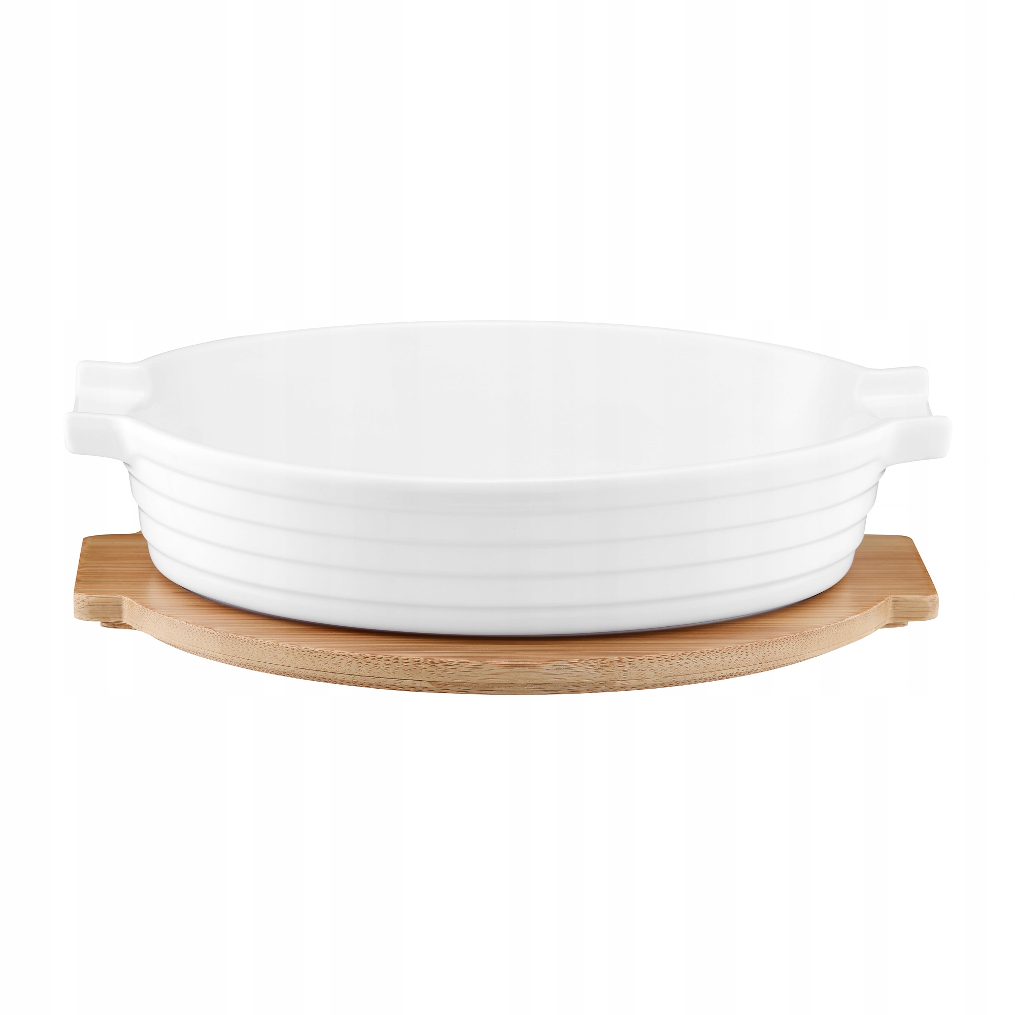 Елегантна овальна форма для випічки з серією Blanc, виготовленою з високоякісної порцеляни. Стильний колір і обтисна форма зроблять страви, приготовані в ньому справжнім святом смаку. Форма має великі практичні ручки та бамбукова підставка, що полегшує переміщення гарячої страви та захищає стіл. Він також може діяти як обкладинка, завдяки якому страва також ідеально підходить для зберігання страв у холодильнику. Форма чудово виглядає на столі, завдяки якому будь -яку страву, приготовану в ньому, можна подати негайно. Призначений для використання в духовці для температури +250 ° С (без бамбукової підставки). Можна мити в посудомийній машині для посуду (крім бамбукової підставки).