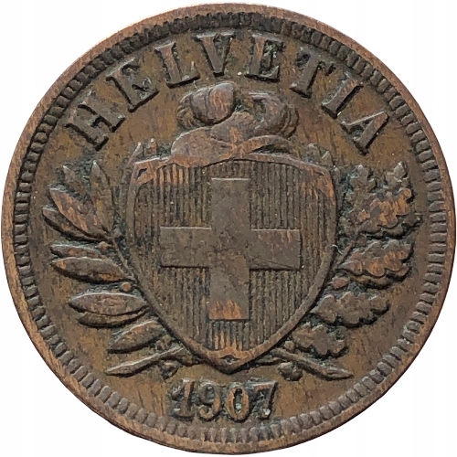 39579. Швейцарія, 2 раппени, 1907р.
