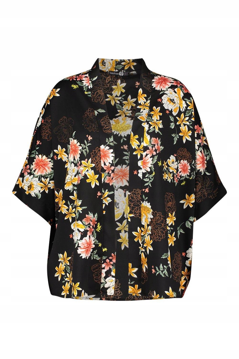 3A0B68 P29 ПОКЛАДКА КІМОНО BOOHOO ЧОРНЕ З КВІТАМИ 3XL