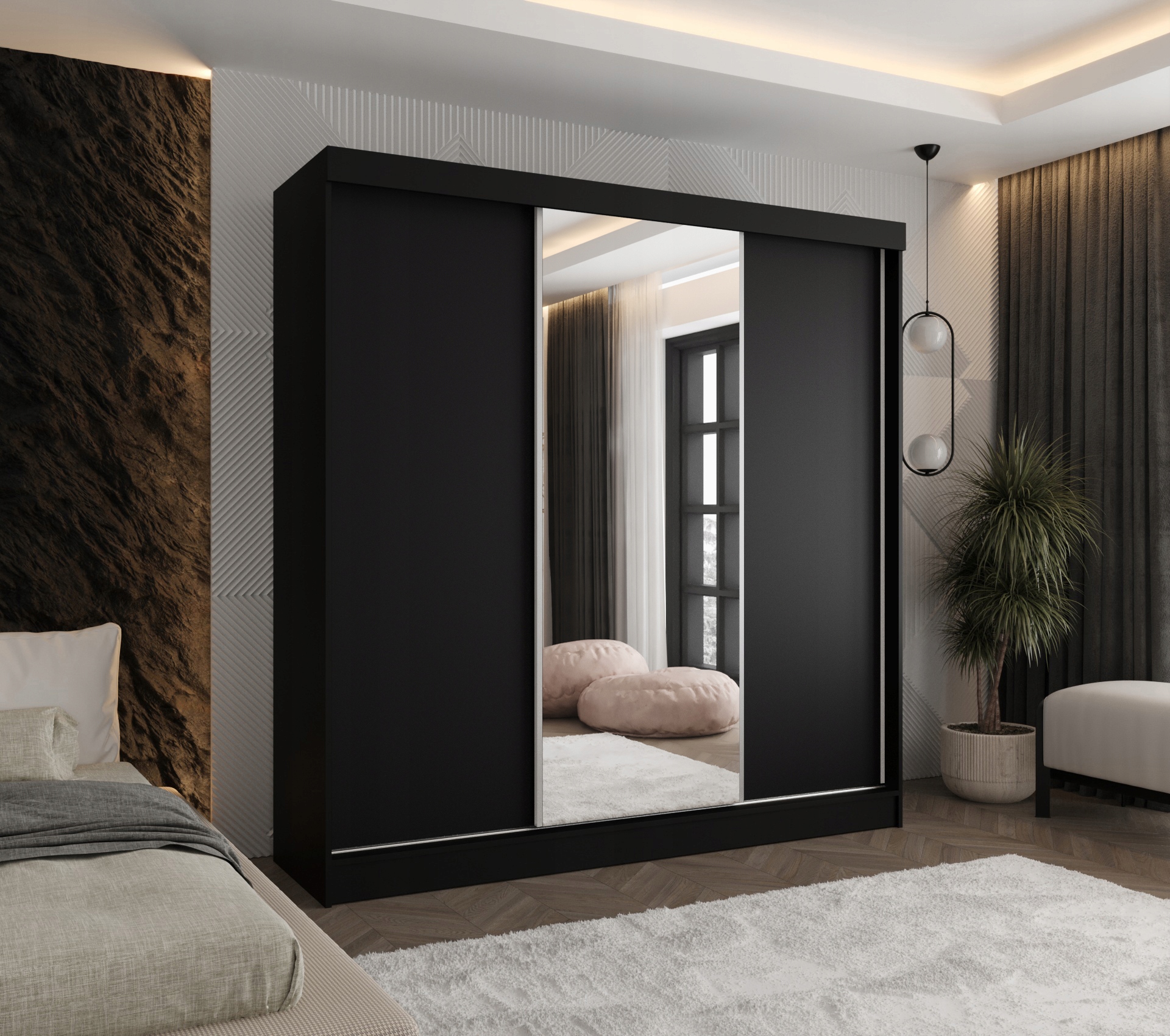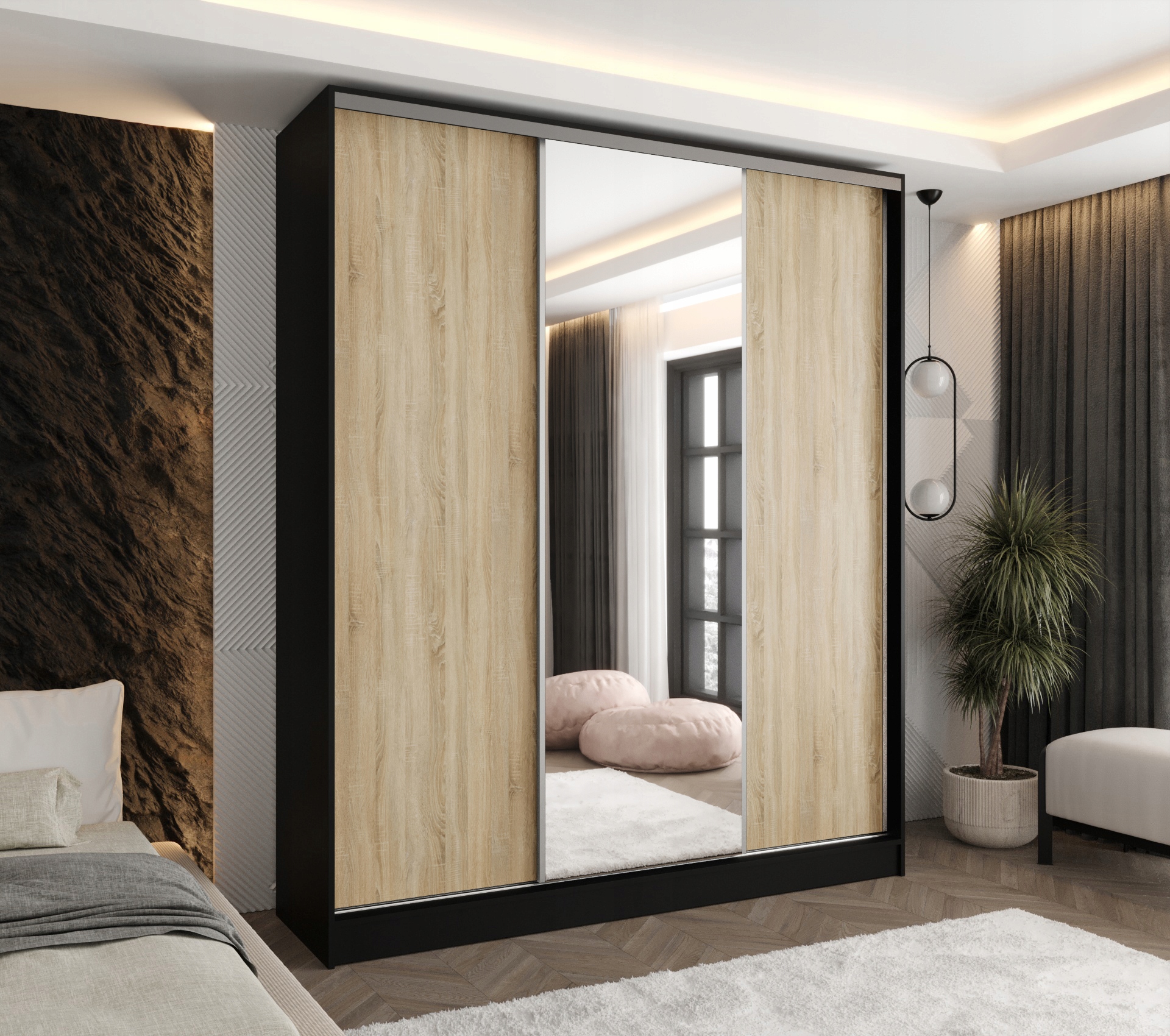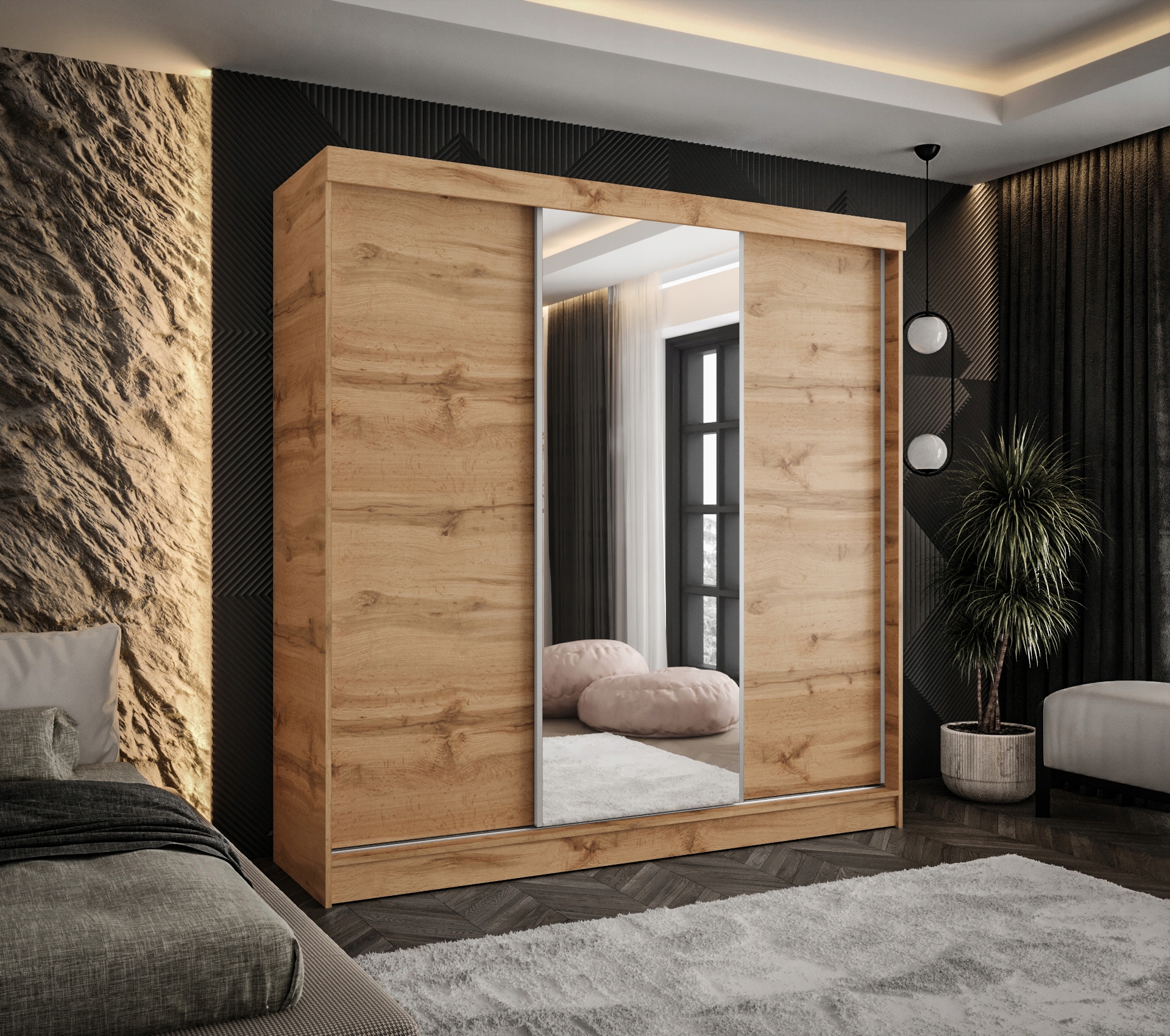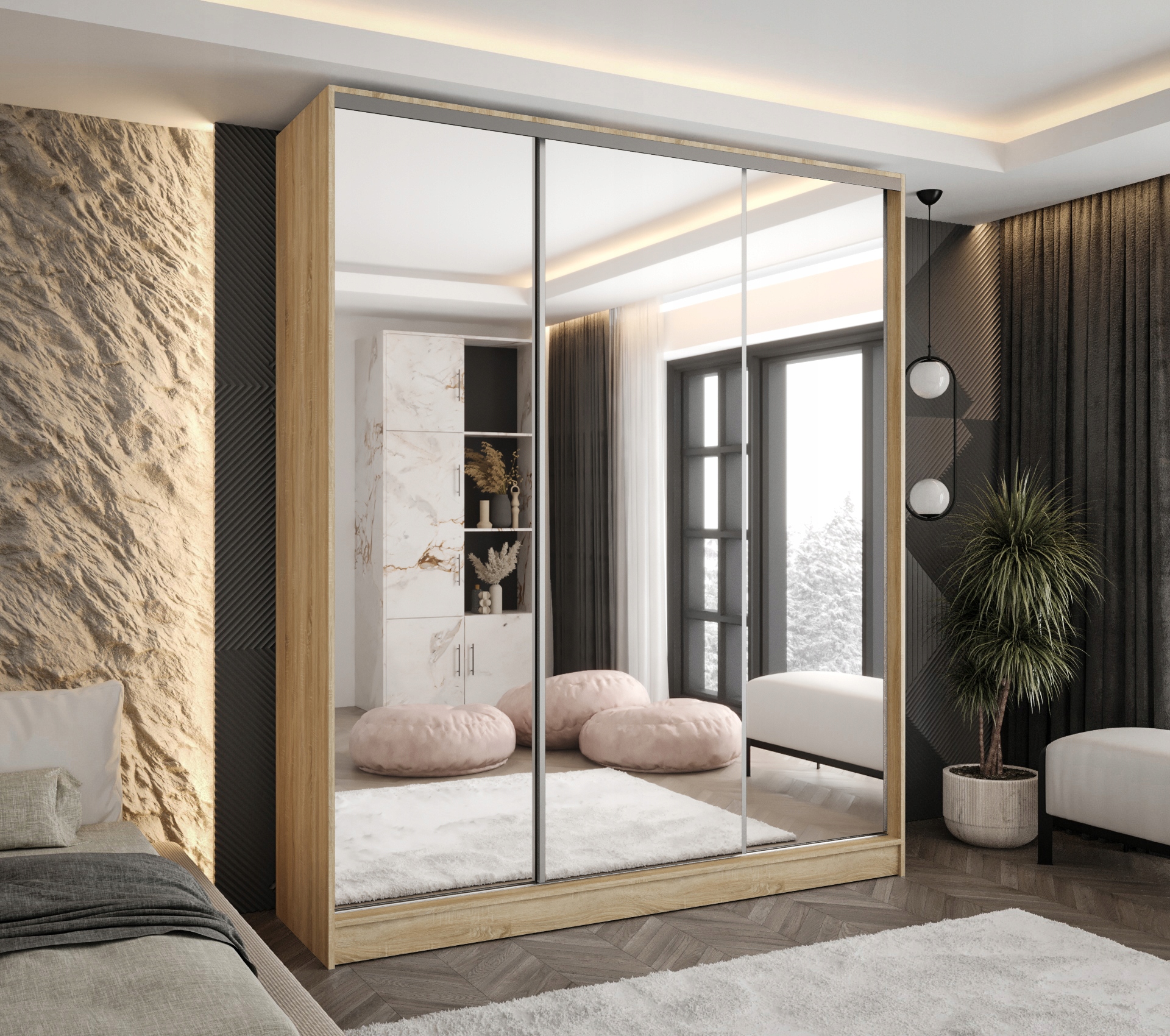 3D -розсувний гардероб 200x250 Sonoma Oak+дзеркало - високий