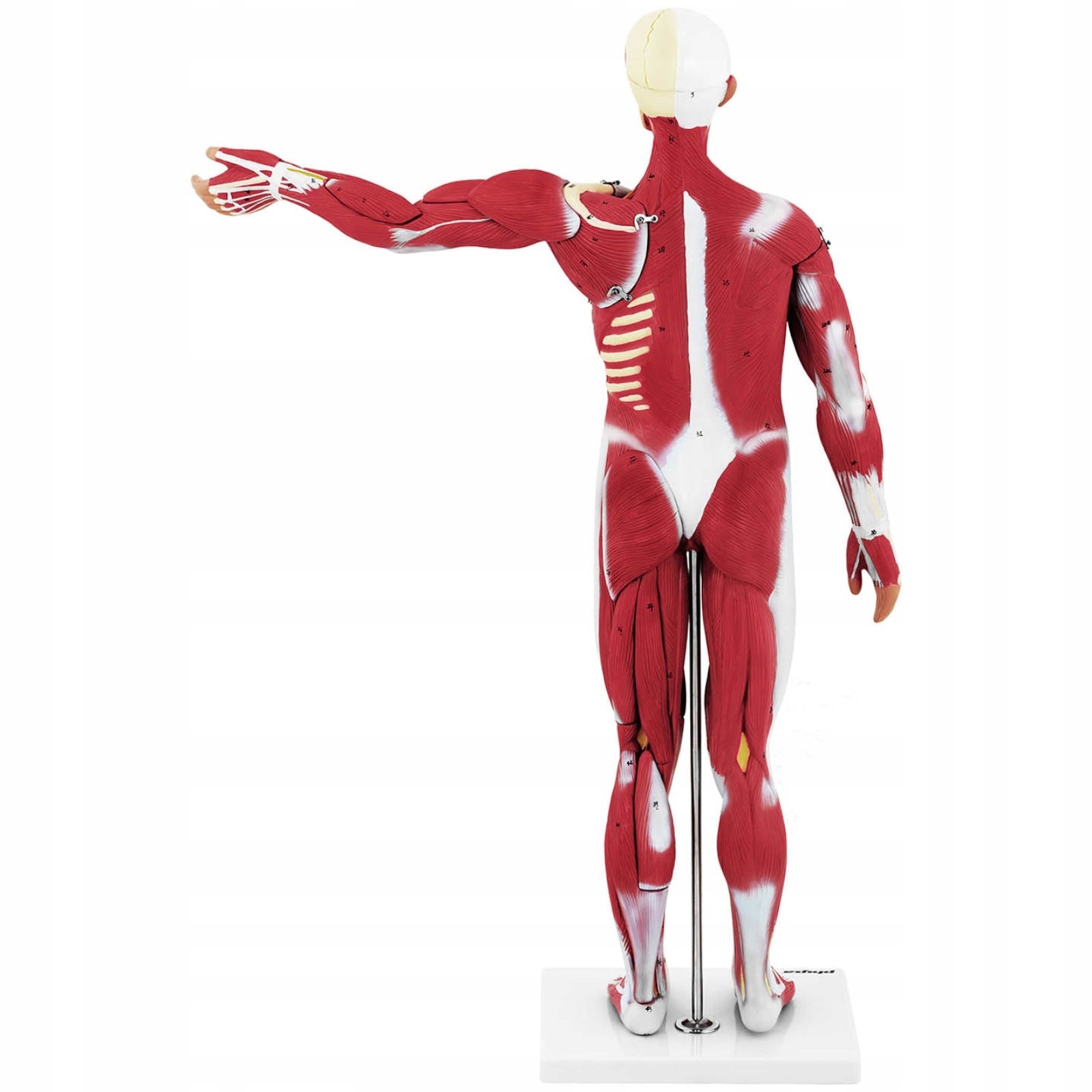 Анатомічна модель тіла людини компанії Physa є чудовим навчальним посібником при вивченні будови людського тіла. Добре помітні м'язи та інші частини тіла значно полегшують вивчення анатомії. Репліка використовує 27 знімних елементів. Ви від'єднаєте, серед іншого: м'язи верхніх кінцівок, а також внутрішні органи. 3D модель висотою 76 см виготовлена з ПВХ.