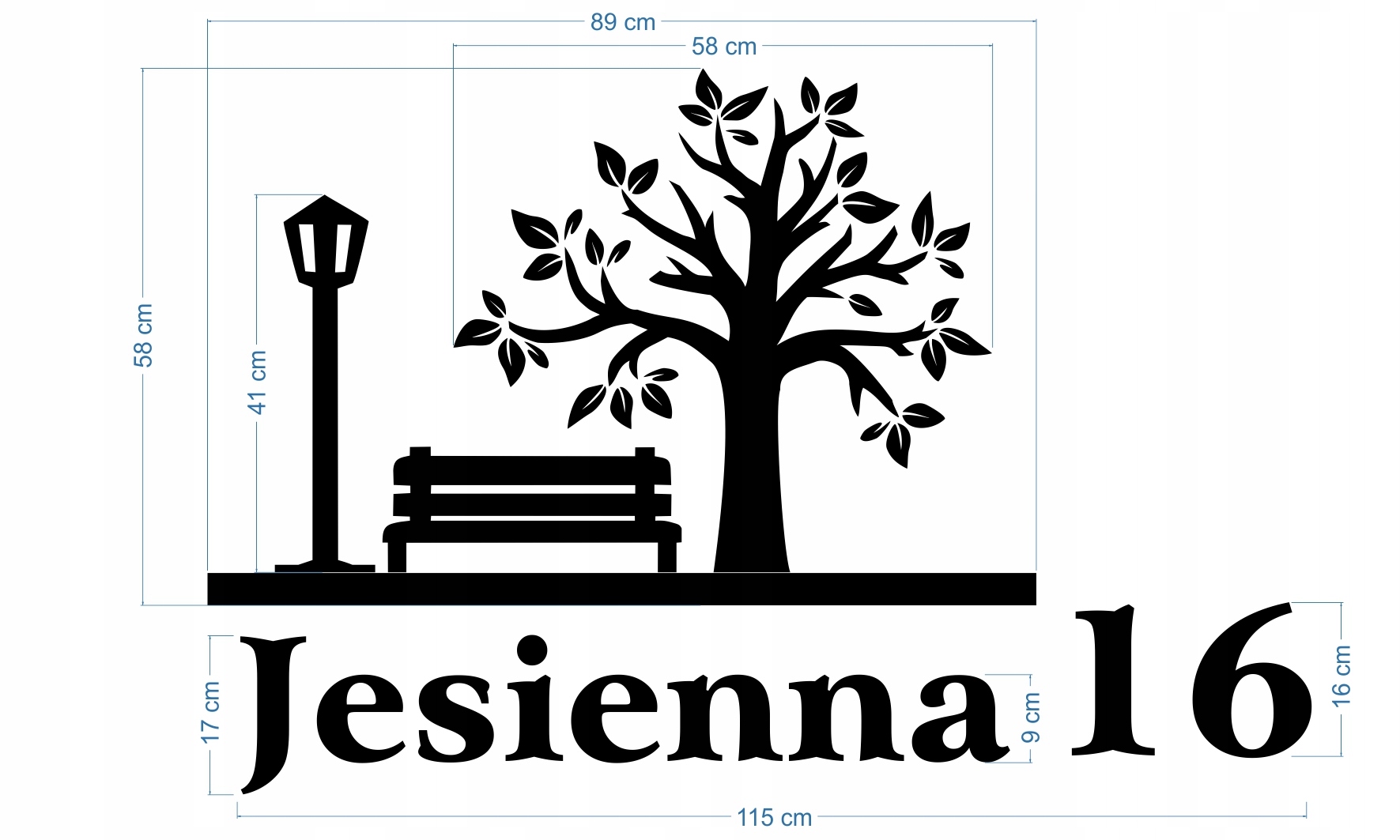 Літери Styrodur мають висоту 13 см (перша велика літера в назві вулиці), а у випадку наступних літер приблизно 9 см (висота наступних літер залежить від вибраного шрифту). Висота цифр у номері будинку 16 см. Ширина всього напису (назви вулиці та номера будинку) залежить від пропорцій.