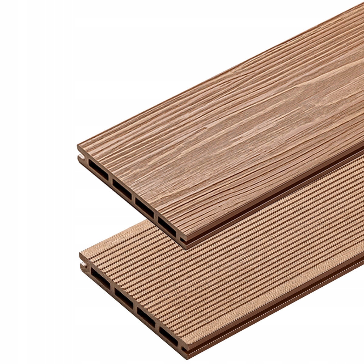 3D-композитні дошки виготовляються шляхом поєднання натуральних компонентів із термопластичними полімерами, завдяки чому вони ідеально імітують натуральну деревину, зберігаючи переваги пластику, зокрема довговічність і легкість у догляді. Завдяки сучасній технології виробництва дошка має характерну тривимірну поверхню. Деревний малюнок вибитий на поверхні за допомогою пресів, що робить її міцною та стійкою до стирання. Інша сторона має вузькі пази, тому дошку можна використовувати з обох сторін, залежно від ваших уподобань. Вони стійкі до несприятливих погодних умов, гниття і гниття, а також комах, і в той же час надзвичайно ефектні композитні плити не мають собі рівних в облаштуванні відкритих просторів. Ми можемо використовувати 3D дошки для терас, балконів, платформ для басейнів, пірсів і фасадів.