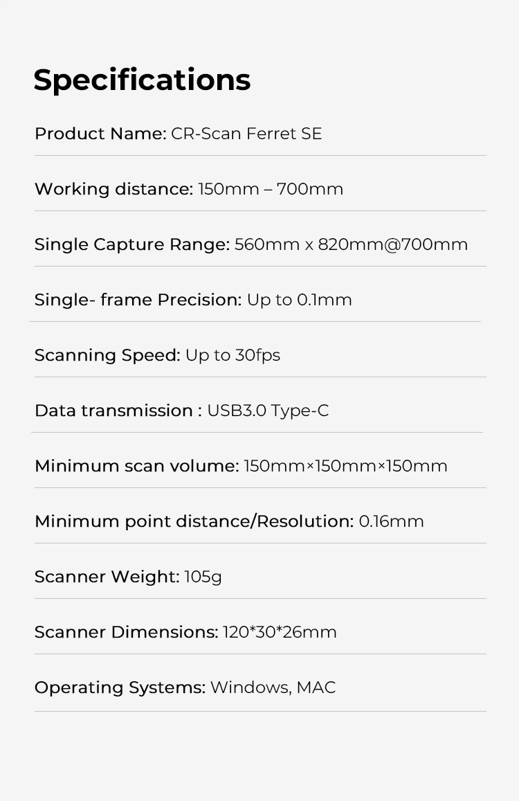 Creality CR-SCAN Ferrret SE 3D-сканер 0,1 мм Висока Точність 30 fp/ s Сканування швидкості сканування
