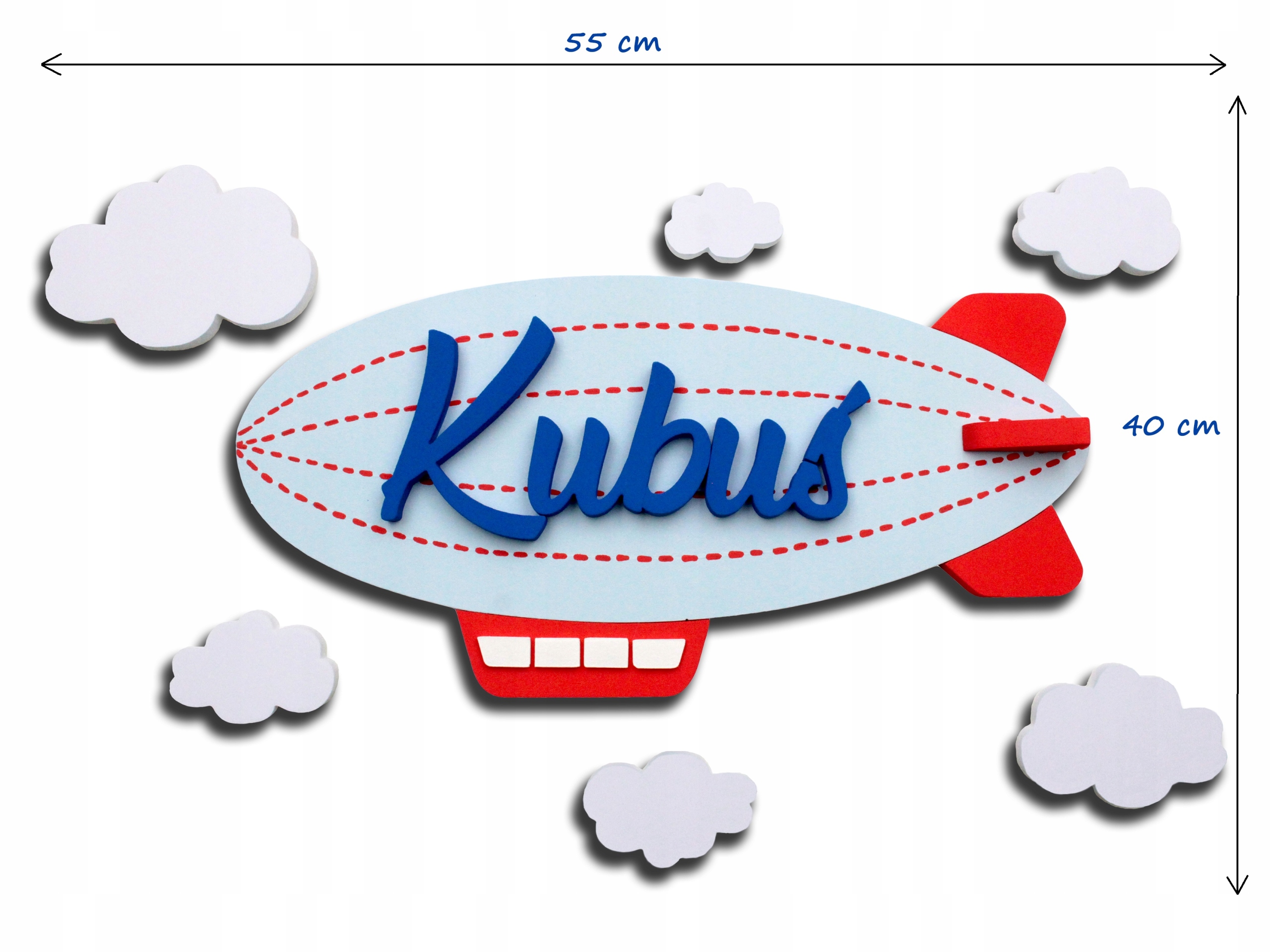 ✔️ Розміри: дирижабль 39,5 см х 20,5 см, хмари 12,5 см х 5,5 см . Розмір усієї прикраси становить приблизно 55 см х 40 см. Товщина всієї декорації приблизно 2 см.