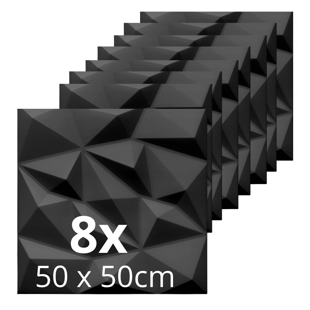 3D ДЕКОРАТИВНА ПАНЕЛЬ 50x50см BLACK BRILLIANT - чорний 3D кейс, стельовий кейс, внутрішня панель - 8 штук