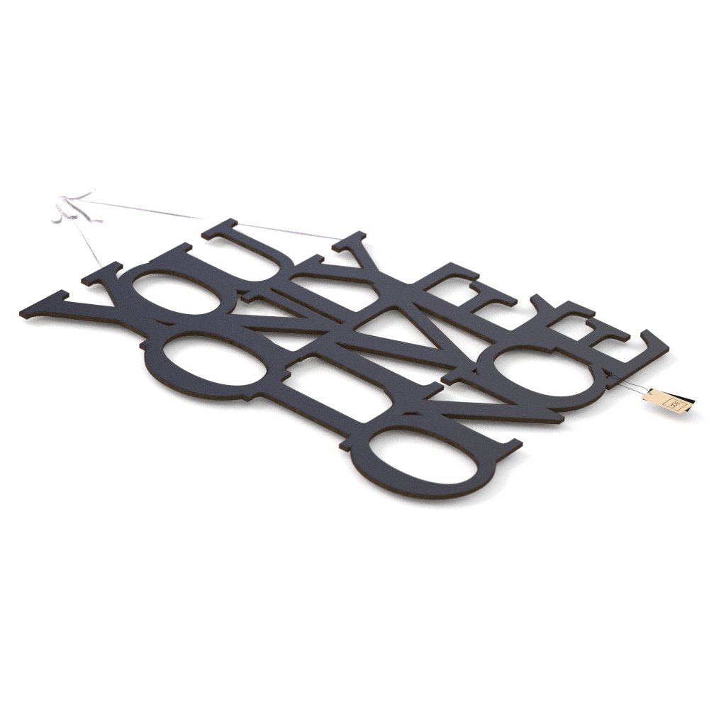 До замовлення (при виборі плити ХДФ) додається двостороння самоклеюча поролонова стрічка. Стрічку можна використовувати на гладкій і чистій поверхні (більшість стін). Ви самі повинні прикріпити стрічку до зворотного боку написів. Для більш складних поверхонь, таких як структурна штукатурка або плитка, написи, вирізані з плит ХДФ, можна прикріпити і іншим способом - самостійно (наприклад, за допомогою клею). При виборі необробленої деревини (фанери) - стрічка в комплект не входить (кріплення самостійно, наприклад на клей). Дизайн цілісний (усі літери складають одне ціле) – тому його також можна повісити на гачки, цвях, шнурок тощо.