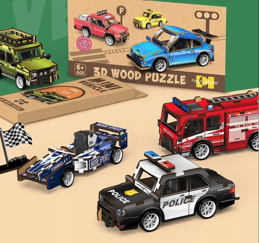 НАБІР З 24 ДЕРЕВ’ЯНИХ 3D-ПАЗЛІВ МІНІ-АВТОМОБІЛЬ