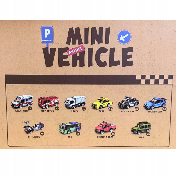Набір складається з 24 частин із 10 типами автомобілів: