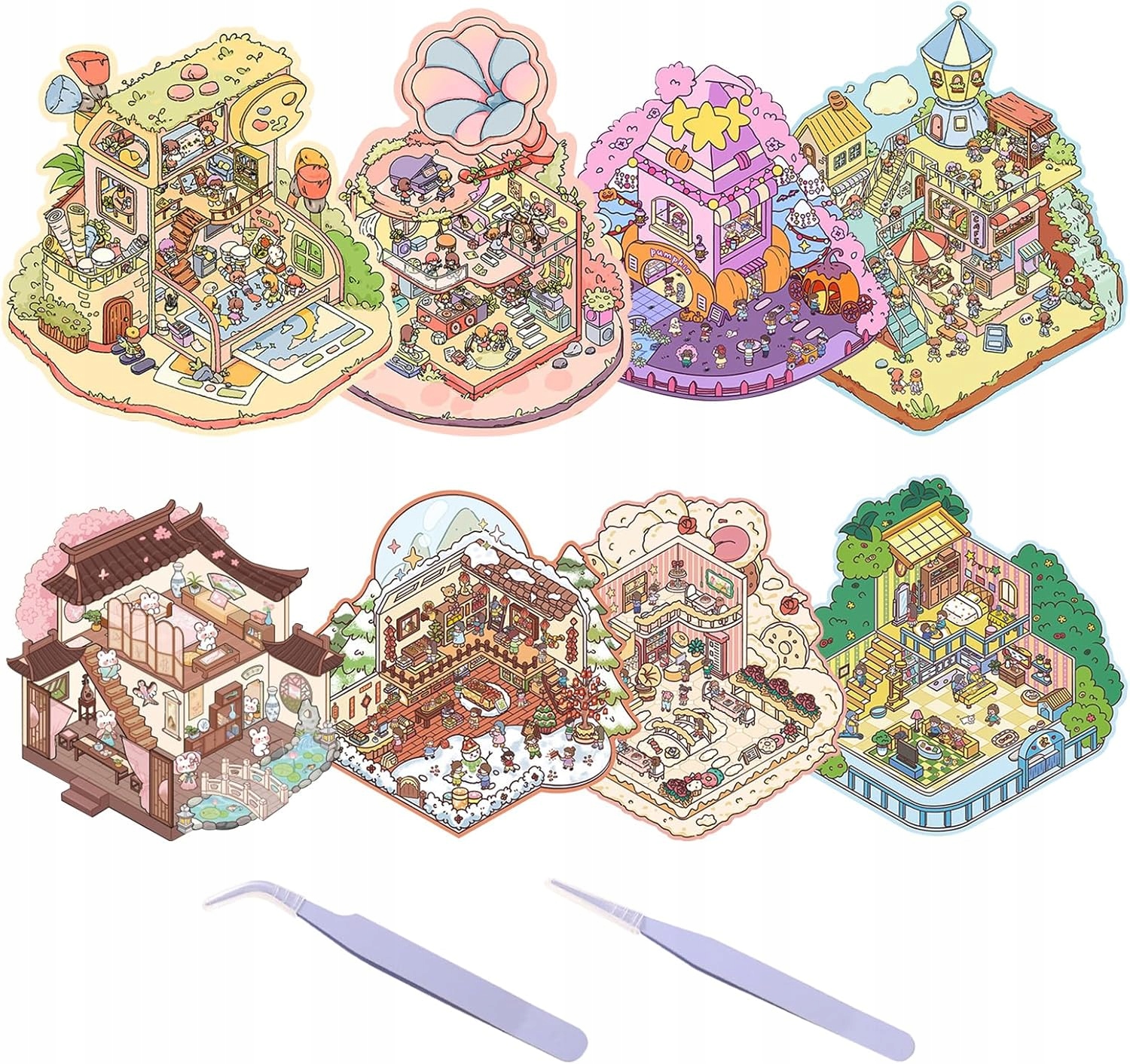 - Набір: сцени, наклейки та пінцет