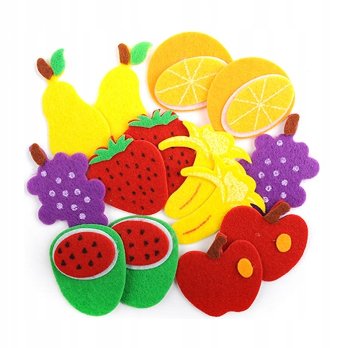 Набір багатошарових фетрових наліпок із фруктовими мотивами. Вони ідеально підходять для будь-яких видів дитячої творчості, а також для декорування творчих проектів, таких як вітальні листівки, альбоми, коробки, подарункова упаковка та багато іншого.