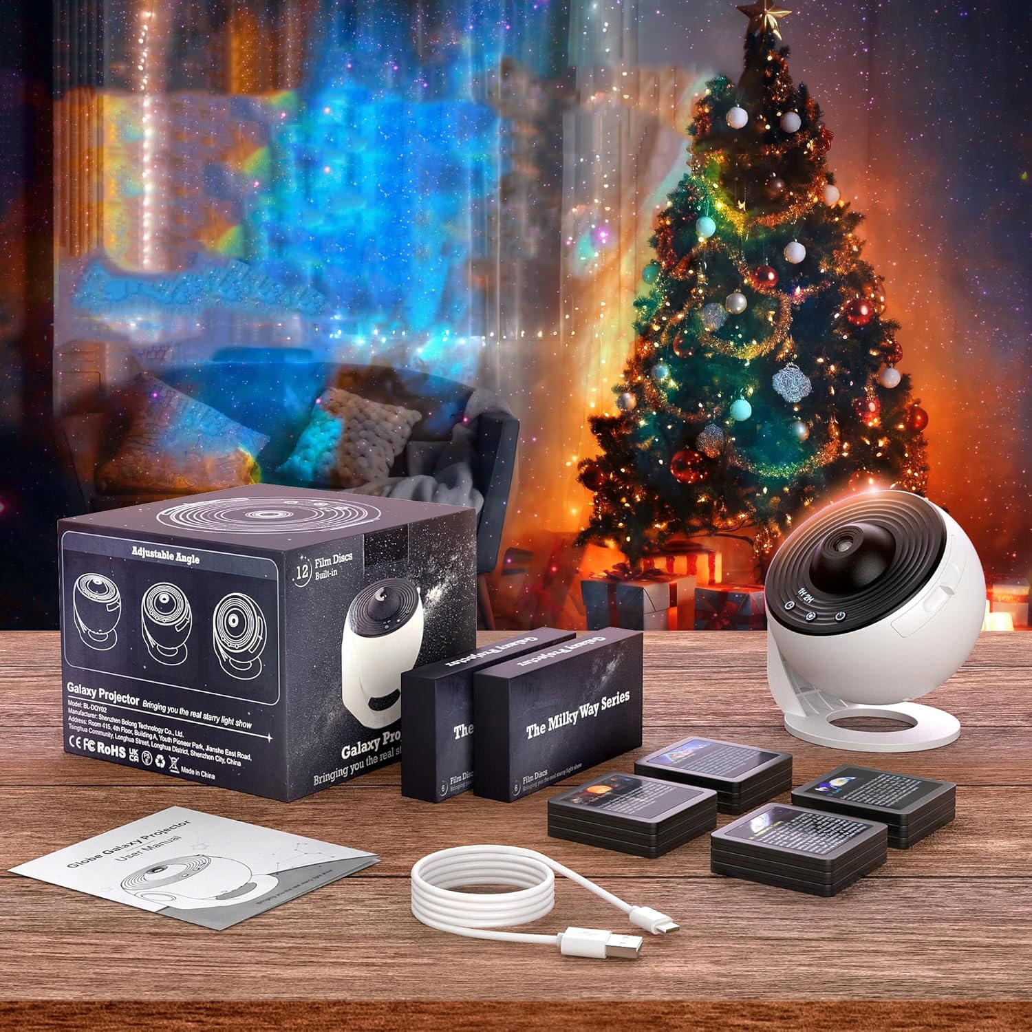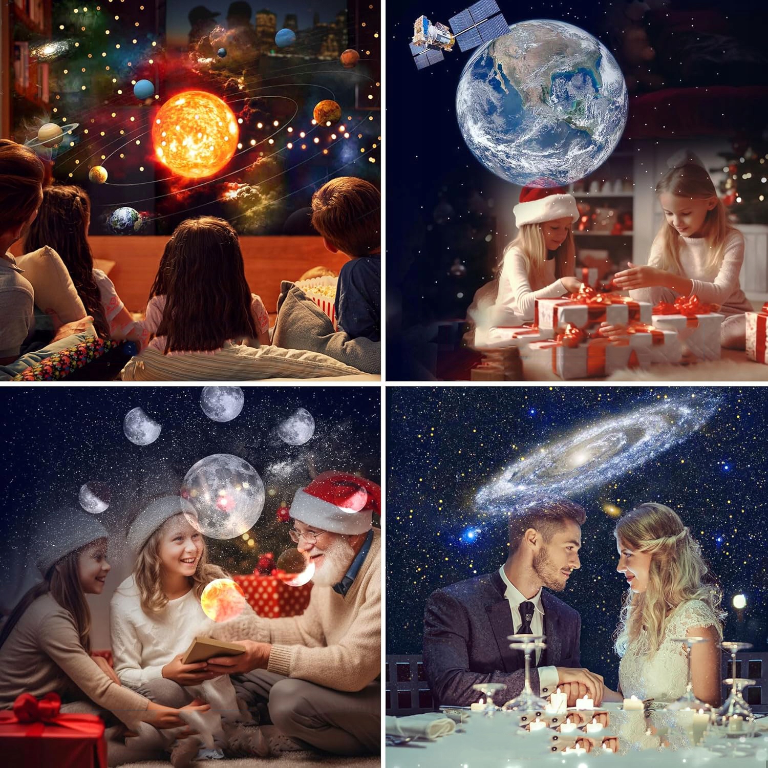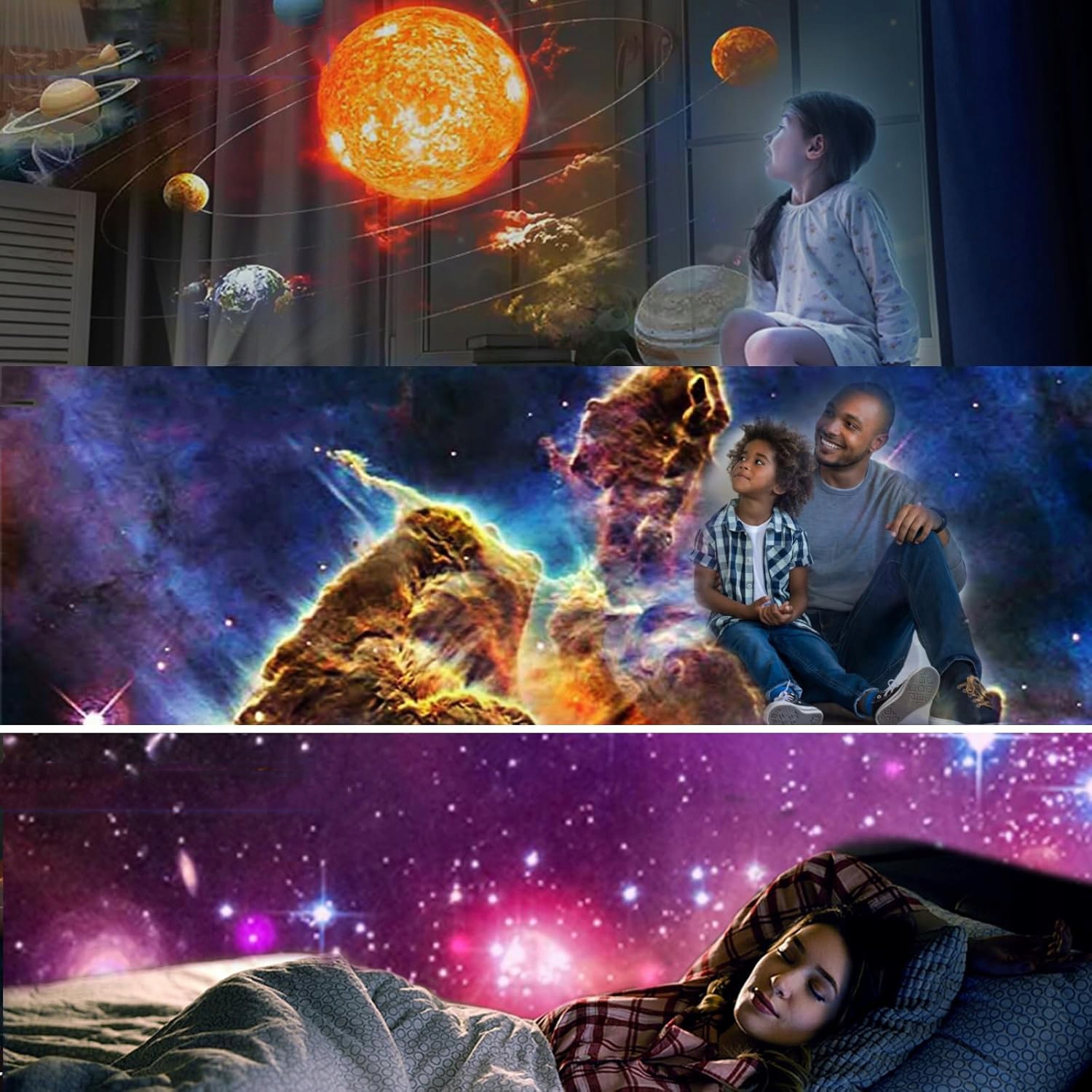 Цей проектор галактик для спальні пропонує 12 сценаріїв перегляду, включаючи Сонячну систему, Землю, Місяць, Чумацький Шлях, Галактику, Галактику Андромеди, NGC4302-NGC4298, Глибоке поле Хаббла, M60--UCD1, Північноамериканську туманність, Містичну гору та Малу Магелланову Хмара. Його можна розмістити у вітальні чи спальні, щоб додати технологічності у свій дім