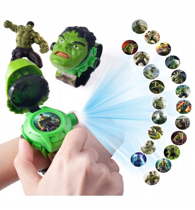У годиннику є проектор для відображення 24 зображень із героєм МЕСНИКАМИ. Щоб відобразити зображення, утримуйте кнопку на бічній частині годинника та повертайте ручку, щоб відрегулювати різкість зображень, що відображаються.