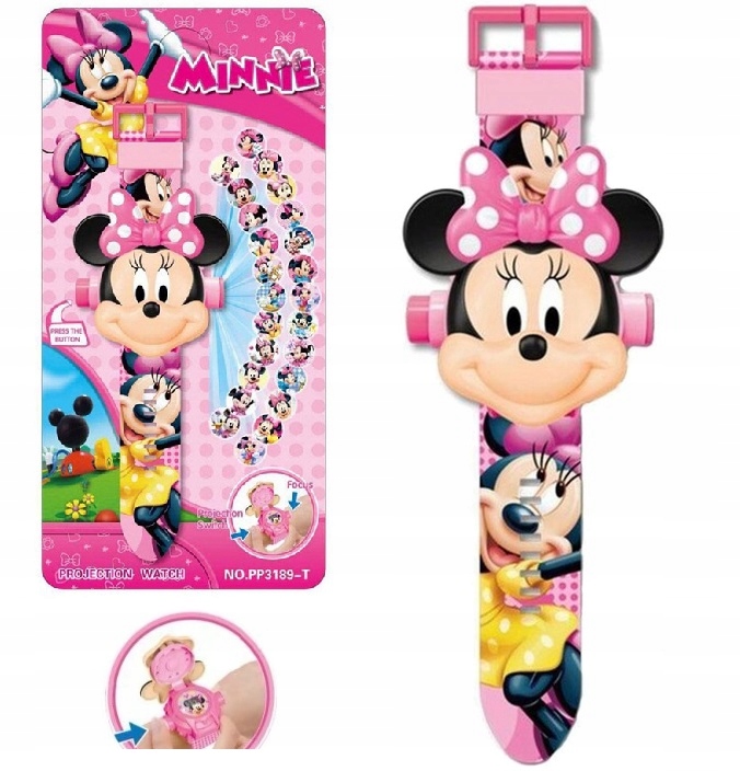 Чудовий дитячий годинник із проектором! Проектор показує цілих 24 картинки з героями відомого мультфільму Міккі Маус.Утримуйте кнопку збоку годинника, щоб відобразити картинки, потім регулюйте фокус за допомогою ручки.