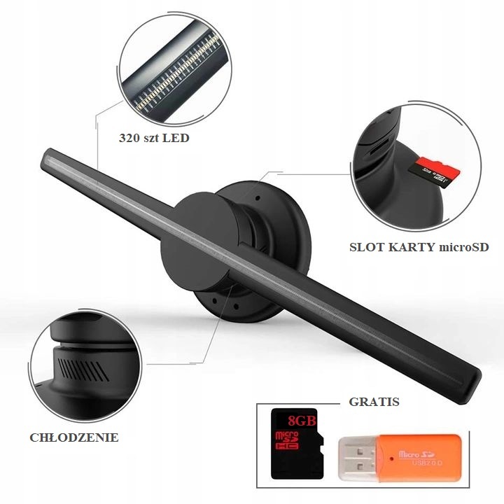 Проектор складається з 320 світлодіодів, які обертаються для відображення трьох -об'ємна анімація, що зберігається на карті micro SD.