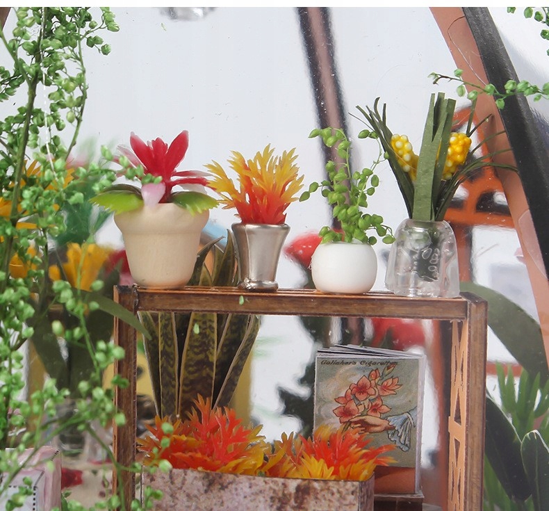 набір, який дозволяє скласти мініатюрну теплицю з світлодіодним освітленням . Для побудови моделі, серед інших, деревина, папір, тканини, дріт, пластик та різні декоративні елементи, такі як барвисті блискітки, намистини, штучні квіти та багато інших матеріалів.
