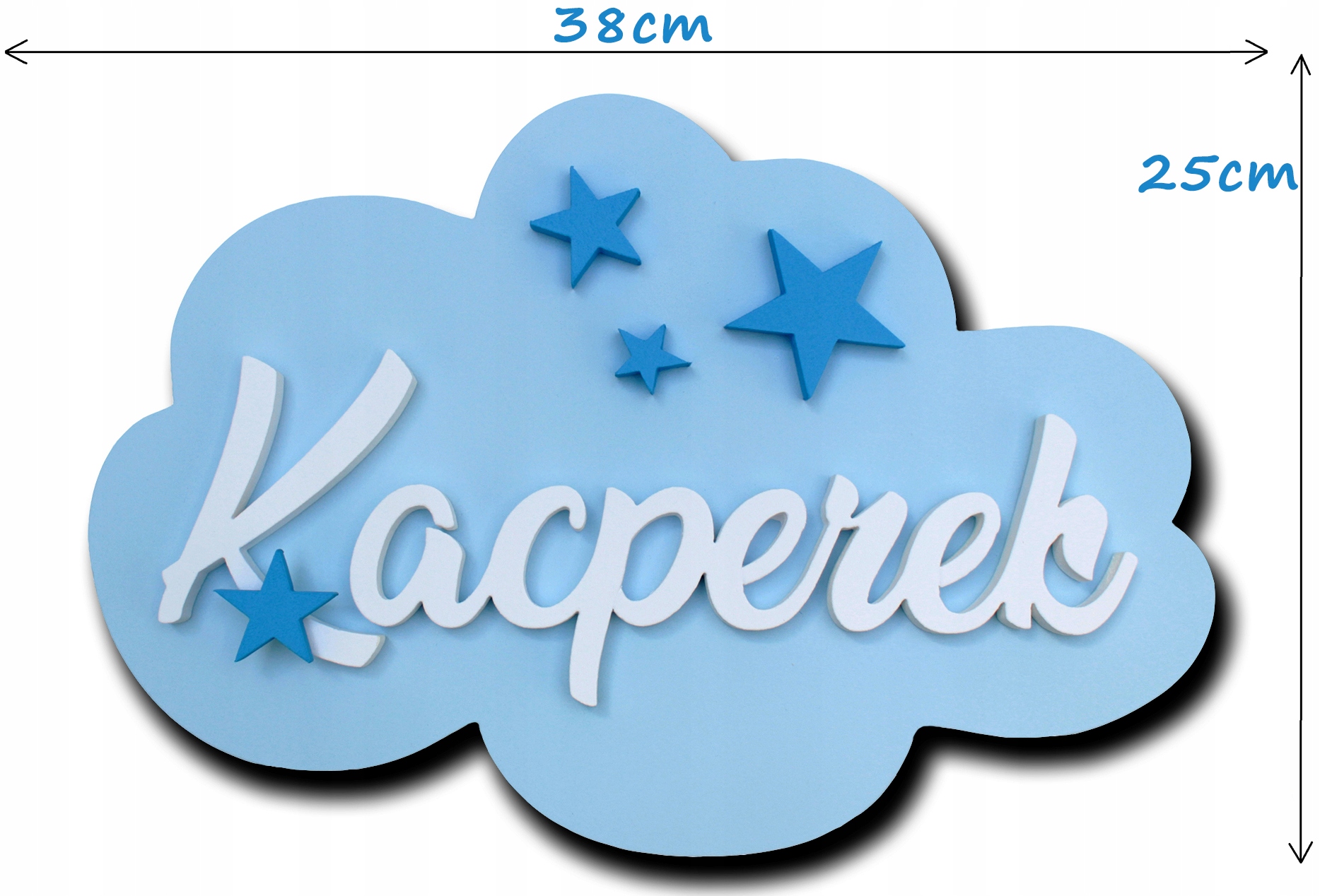 Барвиста, красива, розписана вручну хмара з ім'ям вашої дитини - оригінальна прикраса дитячої кімнати. Чудово виглядає над дитячим ліжечком або дверима кімнати. Це ідеальна ідея подарунка для кожного малюка.