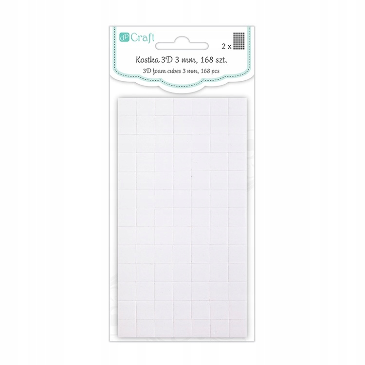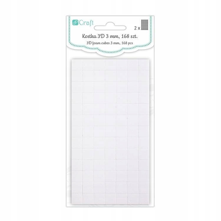 3D cube - двостороння клейка стрічка у вигляді кубиків. Полегшує кріплення дрібних декоративних елементів, як паперу, так і інших матеріалів, наприклад, кристалів, квітів тощо. Необхідний для створення тривимірного ефекту у вітальних листівках, скрапбукінгу та інших творчих проектах.