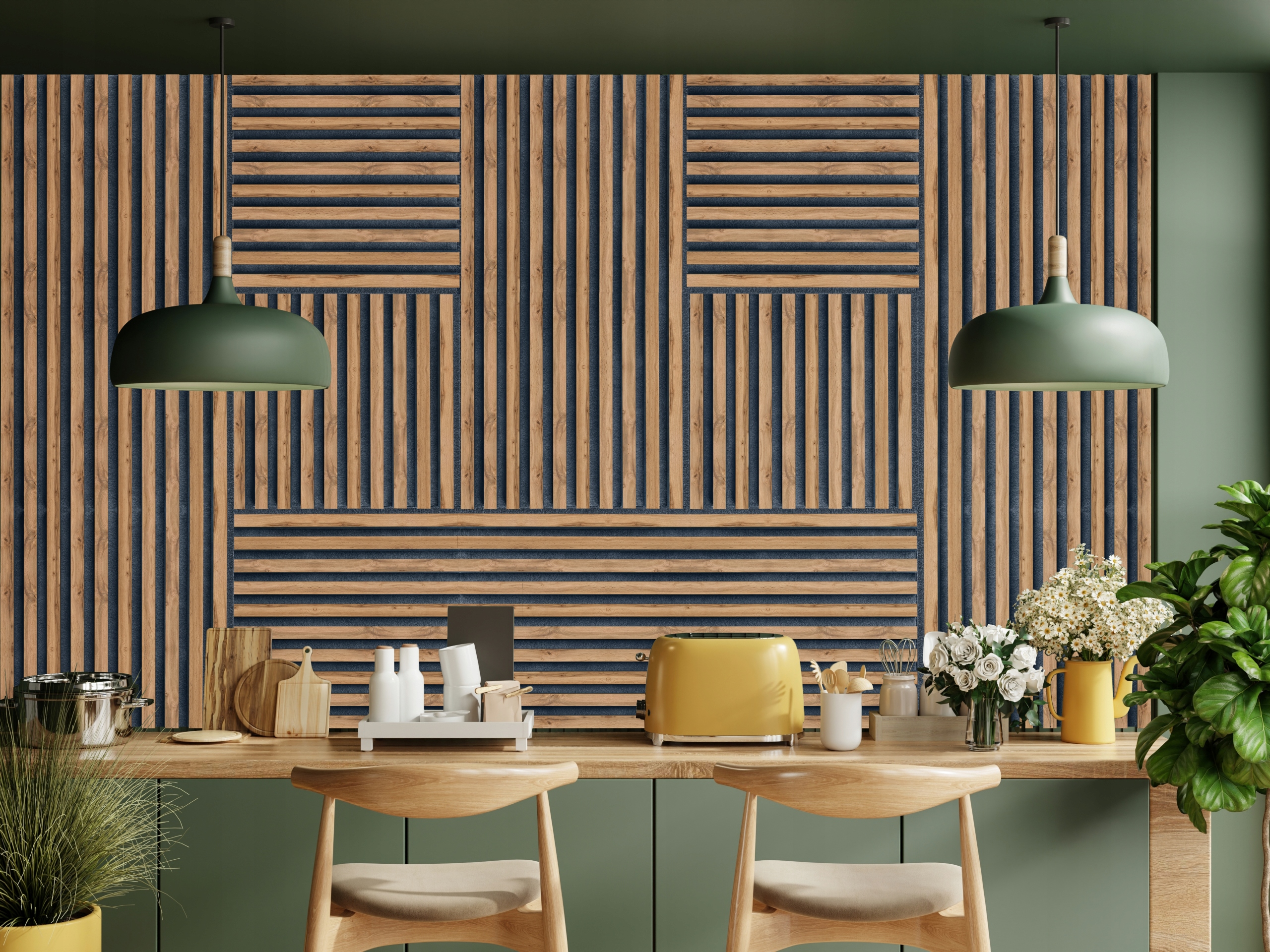 Чорні сторони ламелей надають додаткової глибини та покращують загальний ефект на стіні.