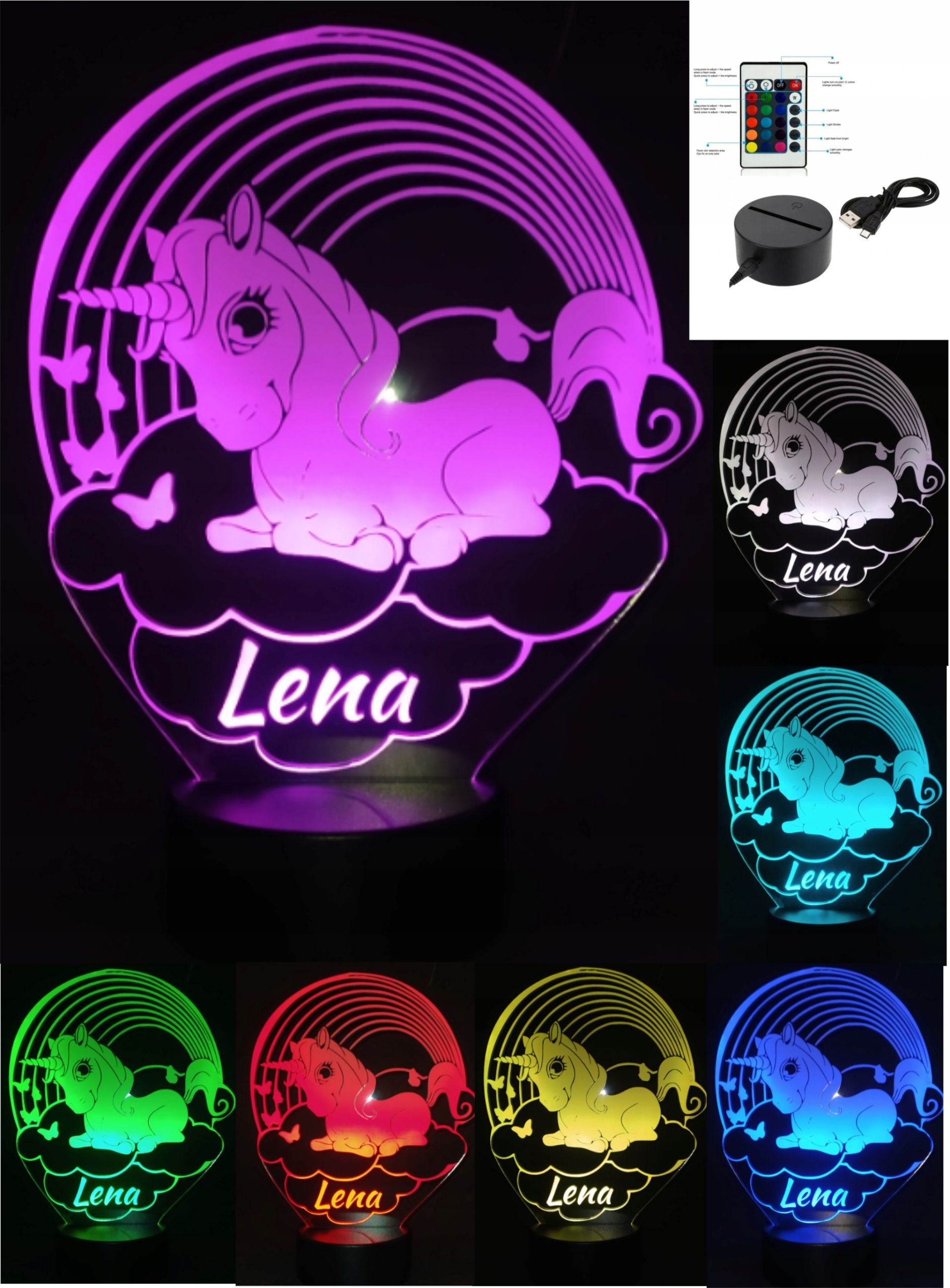 3D LED ЛАМПА З ПУЛЬТОМ ЄДИНОРОГ З ІМЕНЕМ ДИТИНИ