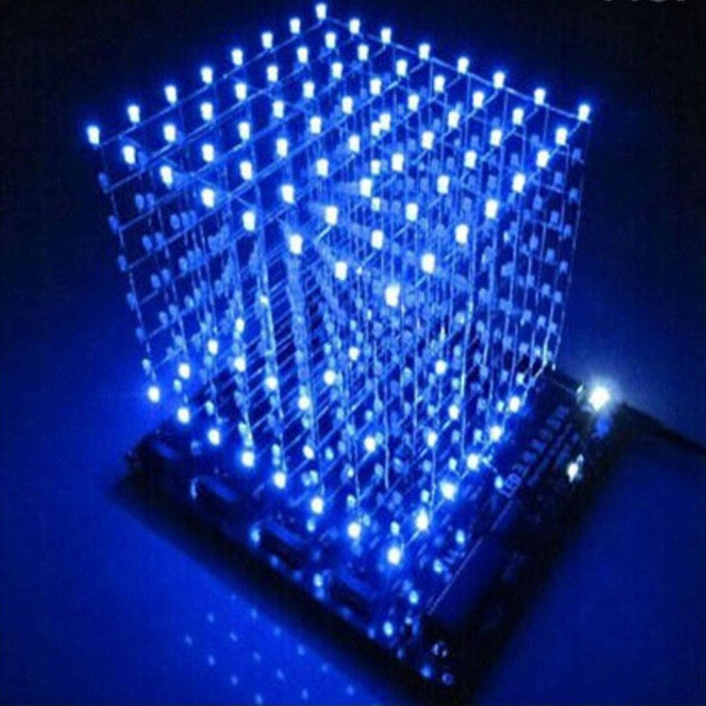 3D Light Cube Світлодіодний світлодіодний світло квадрат 8x8x8 Електронна плата PCB DIY Blue