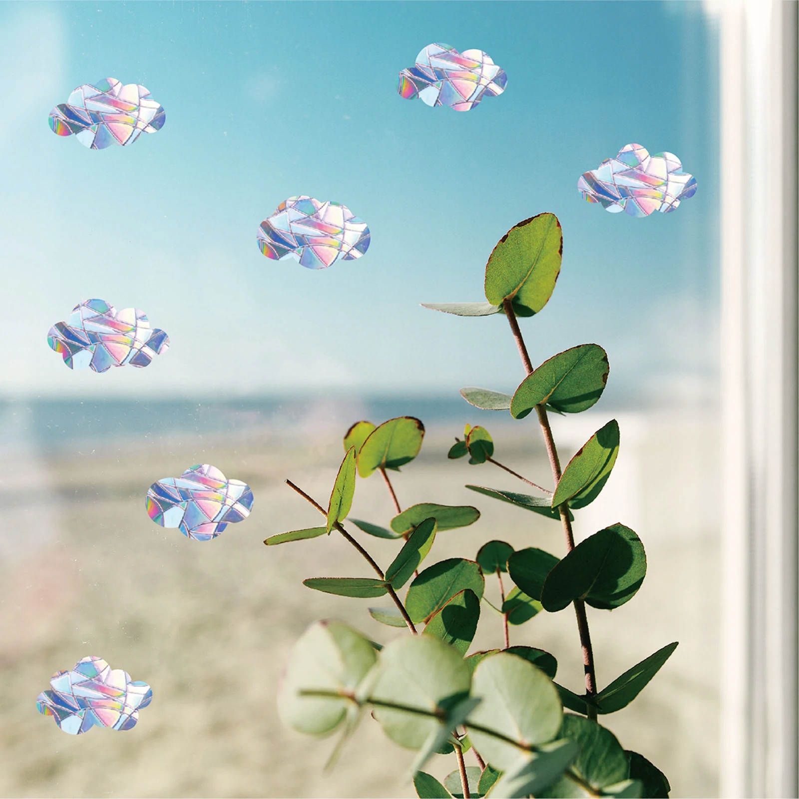 Веселкова наклейка на вікно відбиватиме сонячне світло, створюючи барвистий візуальний ефект, тож наклейки на вікна запобігатимуть ударам птахів у двері чи вікна