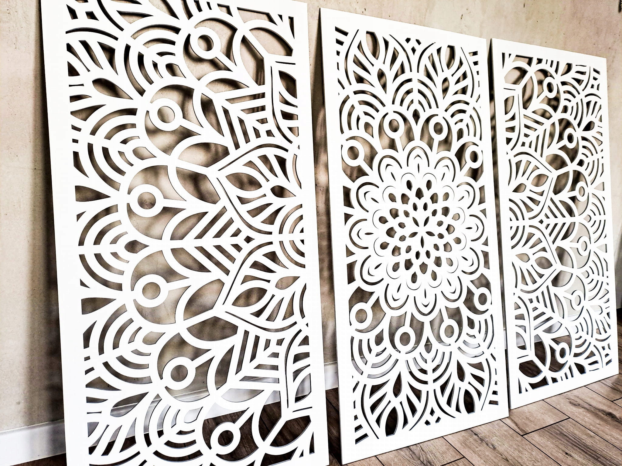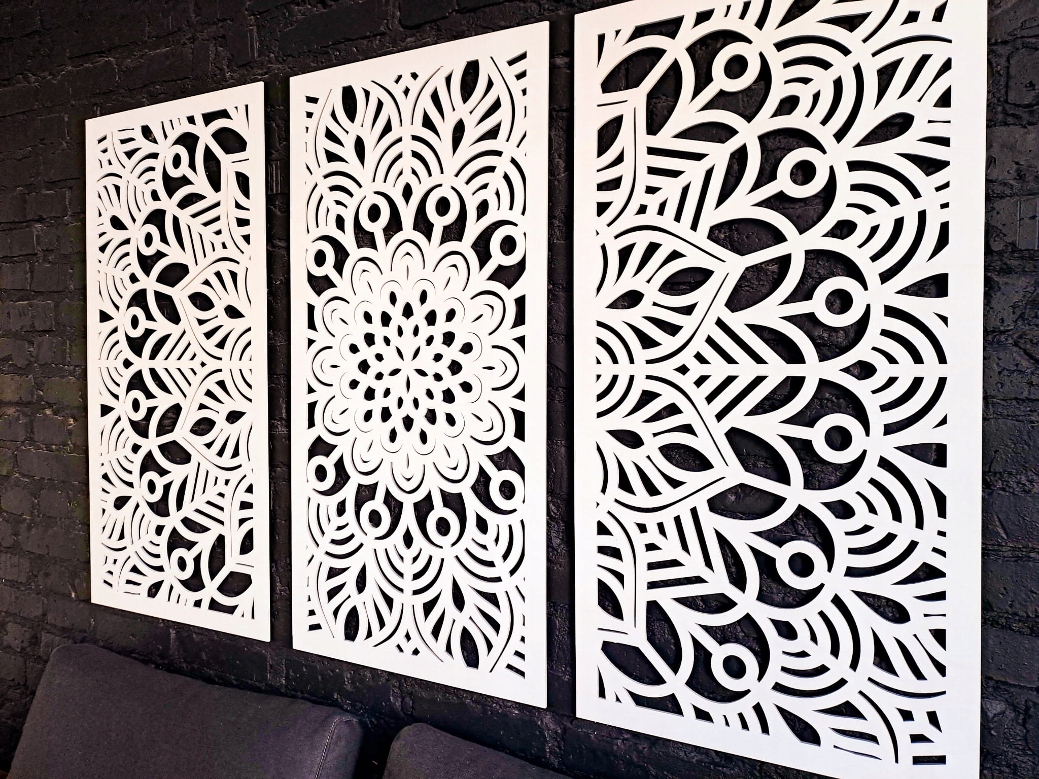Декоративний 3D ажурний розпис із мотивом мандали в красивому, стильному триптиху.
